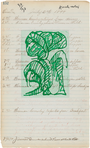 3 Farbätzungen auf liniertem, beschriftetem Registrier- bzw. Manuskriptpapier.