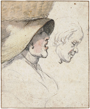 spätes 18. Jh. Korbträgerin im Profil mit großem Strohhut