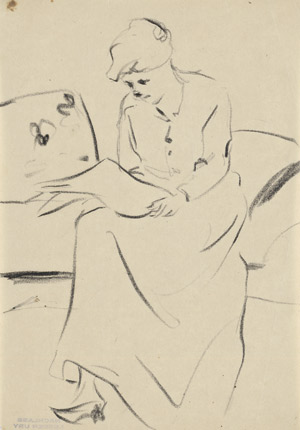 Jeweils verso mit dem violetten Nachlaßstempel. In lockerem umrisshaften Strich gehaltene Studienzeichnungen zweier in die Lektüre vertiefter Damen.