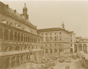 Photographer unknown. Glass market in Padua. 1850s. Lightly coated salt print. 26 x 33,5 cm. Mounted to thin card (slightly buckled, some spots), annotated in ink/pencil on mount.