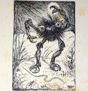 Kubin, Alfred. - Praetorius, J. Rübezahl. Fünfzig Historien des Magisters Johannes Prätorius. 105 S., 2 Bl. Mit 32 (14 ganzseitigen) Illustrationen von Alfred Kubin. 28 x 19 cm. Illustr. OKart. (fleckig). Augsburg, J. Stauda, bzw. Karlsbad, Adam Kraft, 1927.