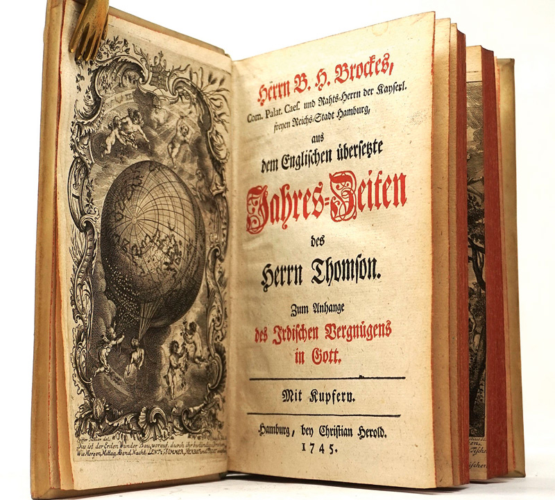 (1680-1747)Aus dem Englischen übersetzte Jahres-Zeiten des Herrn Thomson. Hamburg, C. Herold, 1745. - Erste Ausgabe