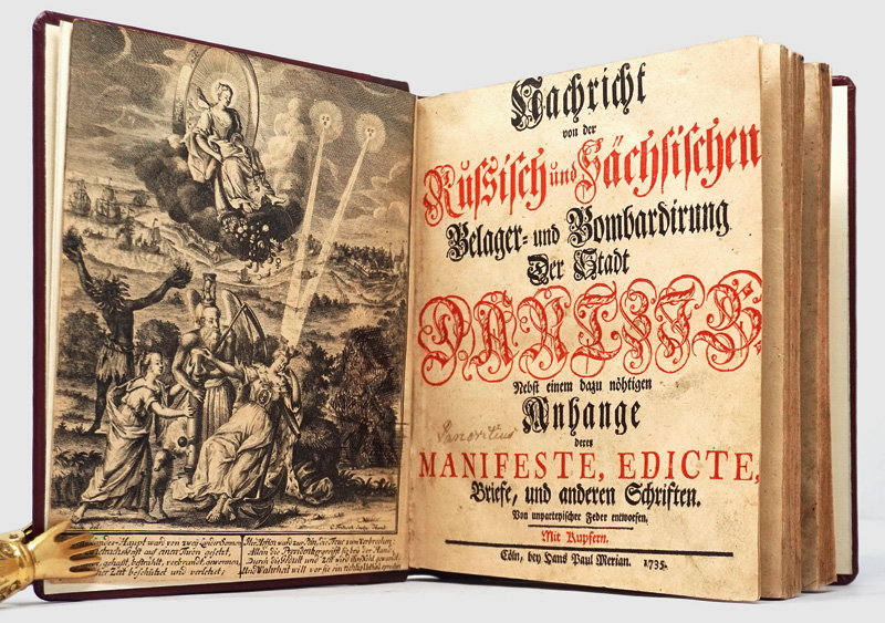 (1686-1745)Nachricht von der Belagerung- und Bombardirung der Stadt Dantzig. Köln, H. P. Merian, 1735. Erste Ausgabe