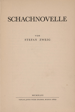 (1881-1942)Schachnovelle. Buenos Aires, J. P. Kramer, 1942. - Eines von 50 Exemplaren der Vorzugsausgabe