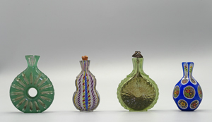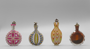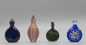 Sammlung von ca. 30 Glasflakons + zahlreiche Beigaben. Zumeist 20. Jahrhundert