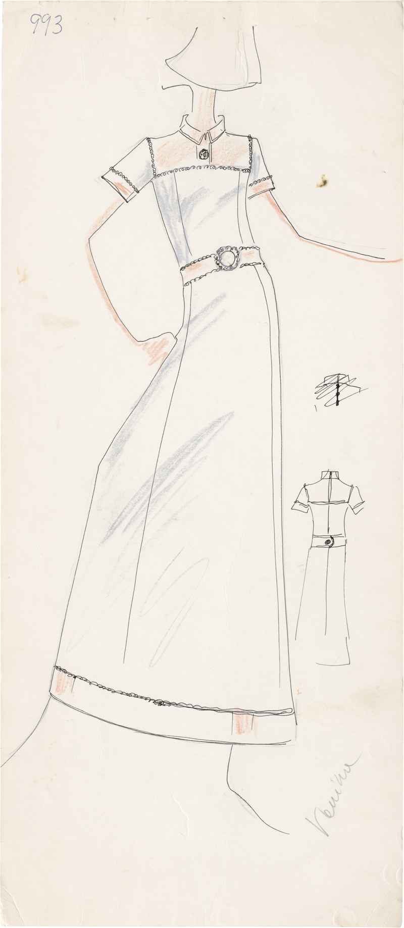 (1933 Hamburg - 2019 Neuilly-sur-Seine)Modezeichnung (Langes Kleid)