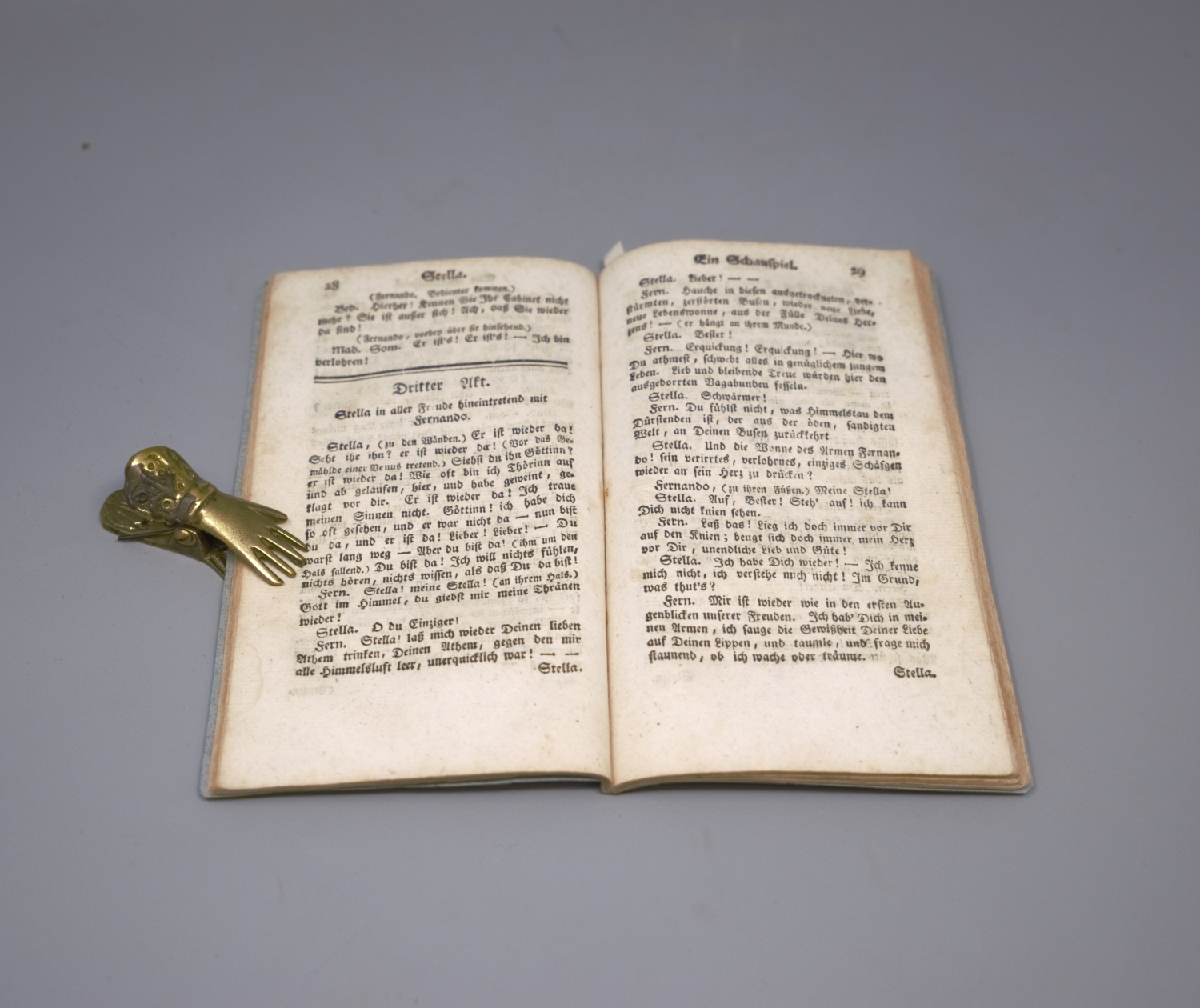Goethe, J(ohann) W(olfgang von). Stella. Ein Schauspiel für Liebende in sechs Akten. 78 S. 17 x 10,5 cm. Neuere Broschur. O. O. u. Dr. 1776.