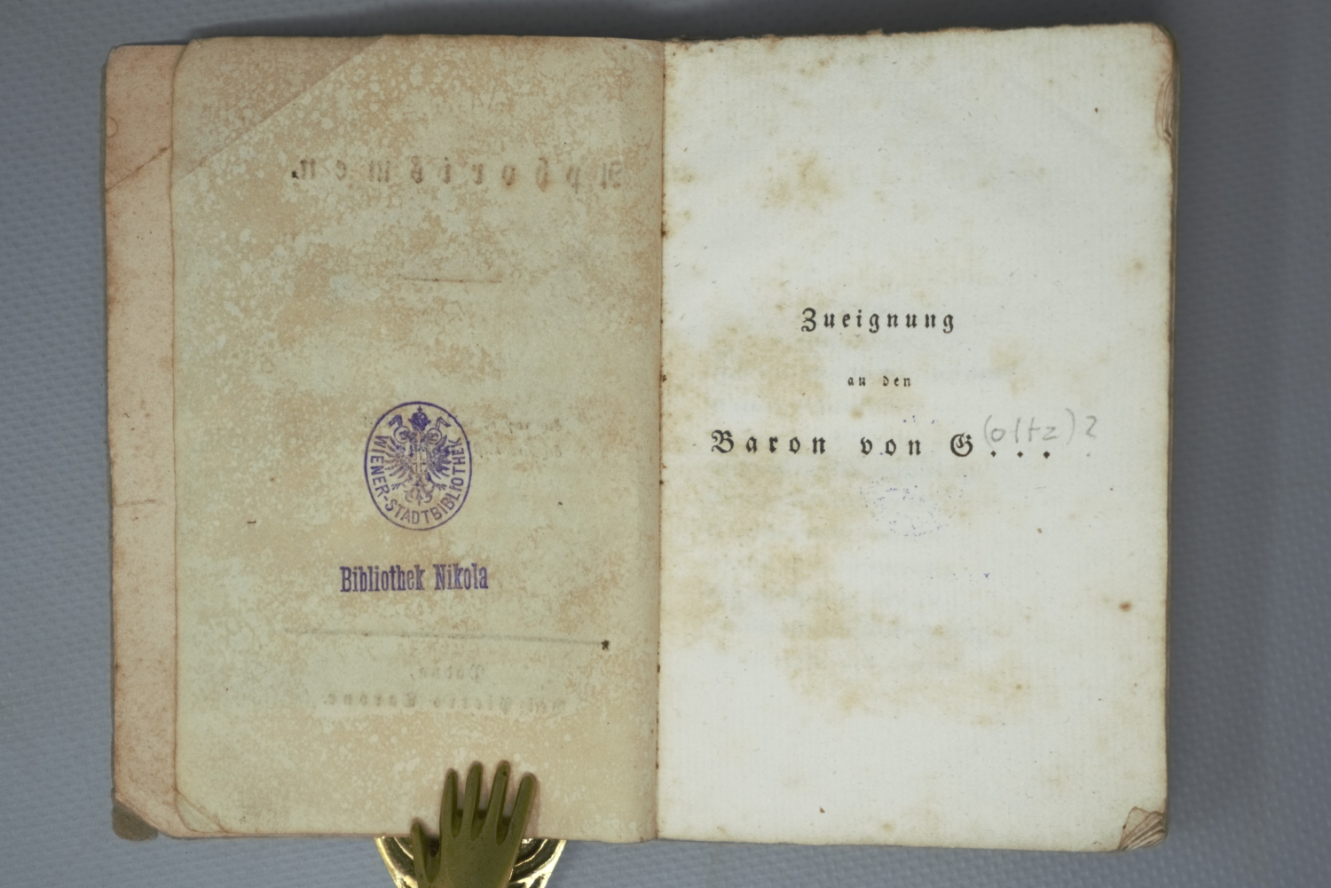 (Klingsberg, Graf von). Aphorismen. 6 Bl., 118 S. Mit gestochenem Frontispiz. 13 x 8,5 cm. OBroschur (etwas fleckig und berieben, mit Papierschildchen). Padua, Pietro Tarone (d. i. Berlin, Christian Friedrich Himburg), (um 1795).