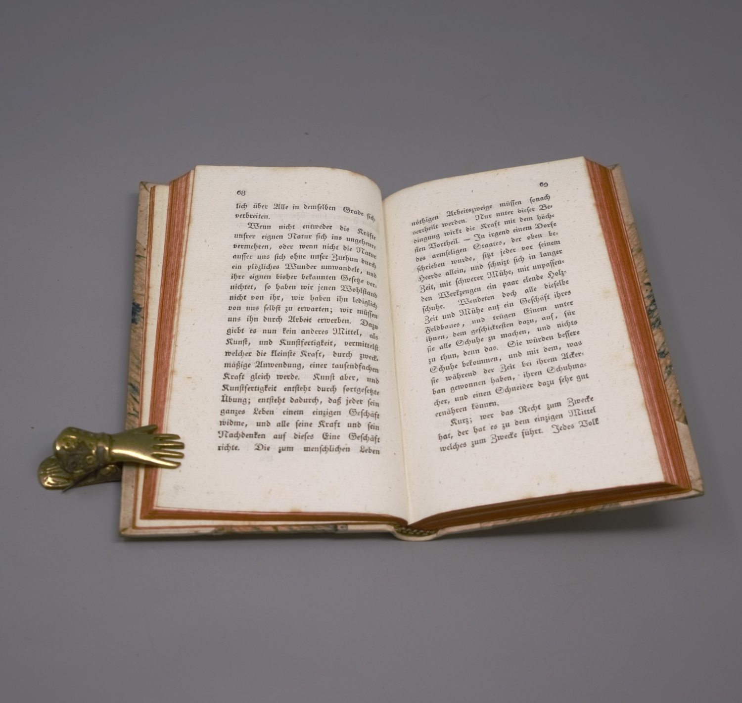 Ziegenfuss I, 341. Baumgartner-Jacobs 51. – Seltene erste Ausgabe der bedeutendsten philosophisch-staatswissenschaftlichen Abhandlung Fichtes, die der Autor selbst "als sein bestes und durchdachtestes Werk" bezeichnete. Lange vor Marx und Engels entwirft Fichte ein in seinen Grundzügen sozialistisches Gemeinwesen, das mehr aus der Rechtslehre deduziert als von historischer Forschung abgeleitet wurde. Die Aufgabe des Staates sieht Fichte nicht so sehr in der Besitzsicherung für den Einzelnen als vielmehr in der gerechten Verteilung der Güter, die übermäßigen Reichtum und damit auch Armut verhindern sollen. Fichte empfiehlt ein autarkes Wirtschaftssystem, das Krisen und Kriege zu verhindern vermag. – Etwas braunfleckig..