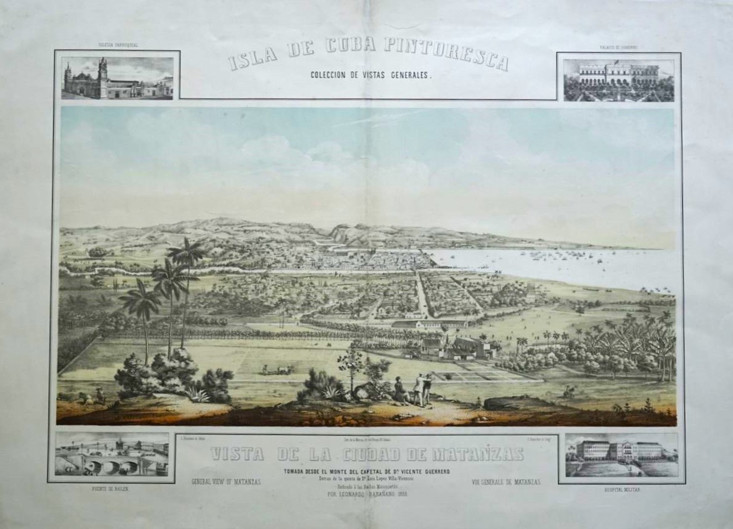 Baranano, Leonardo. Isla de Cuba Pintoresca. Colección de vistas generales. Vista de la ciudad de Matanzas. Chromolithographie. 47 x 69 cm (Darstellung) bzw. 59 x 83 cm (Blatt). 1856.