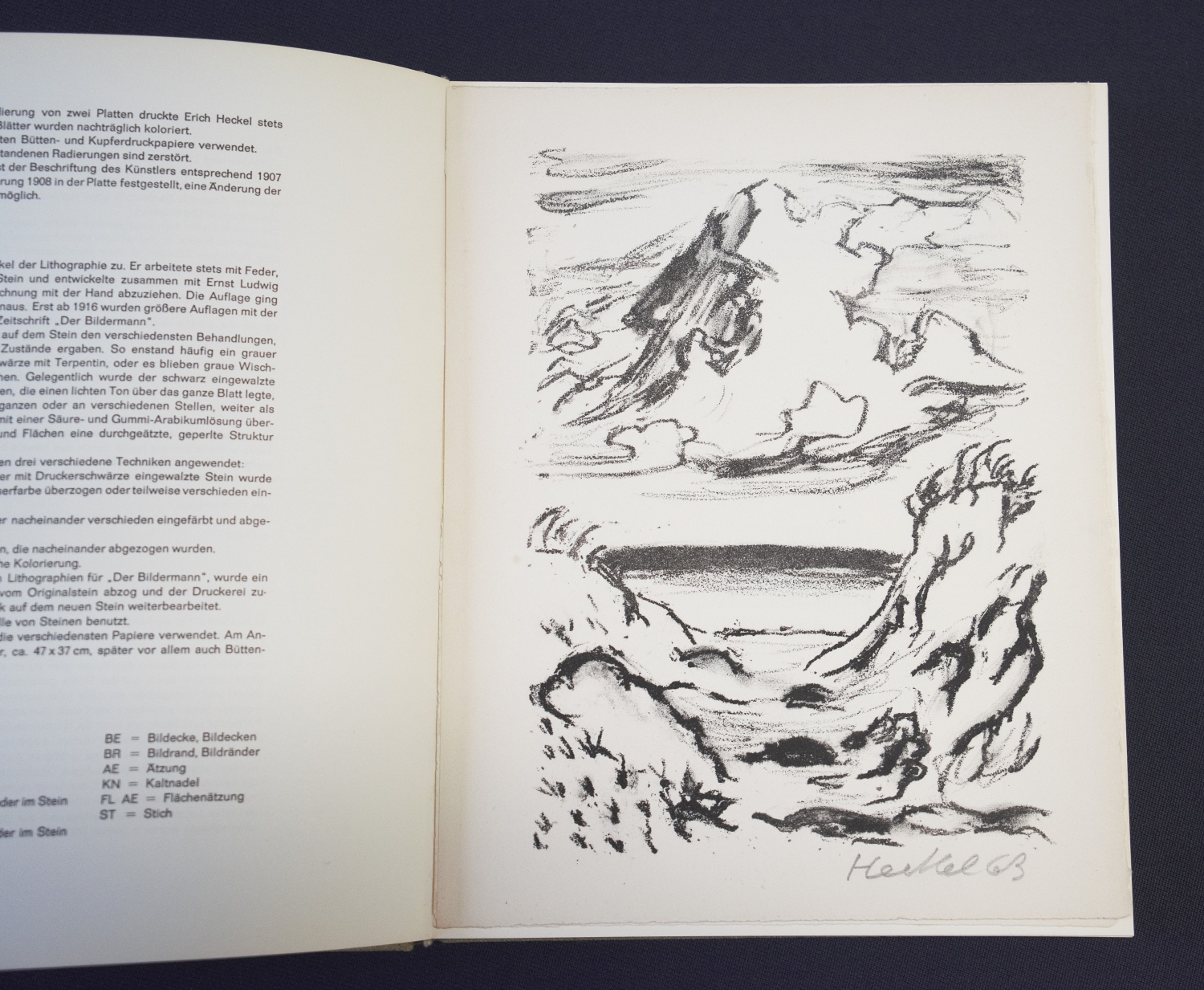 Heckel, Erich. - Dube, Annemarie und Wolf-Dieter. Erich Heckel. Das graphische Werk. 2 Bde. 35 S.; 39 S. Text. Mit zahlreichen Abbildungen auf Tafeln und 6 signierten Orig.-Graphiken von Erich Heckel. 29 x 23 cm. OLeinen mit Deckelmonogramm von E. Heckel und schwart geprägtem RTitel. New York, Rathenau, 1964-1965.