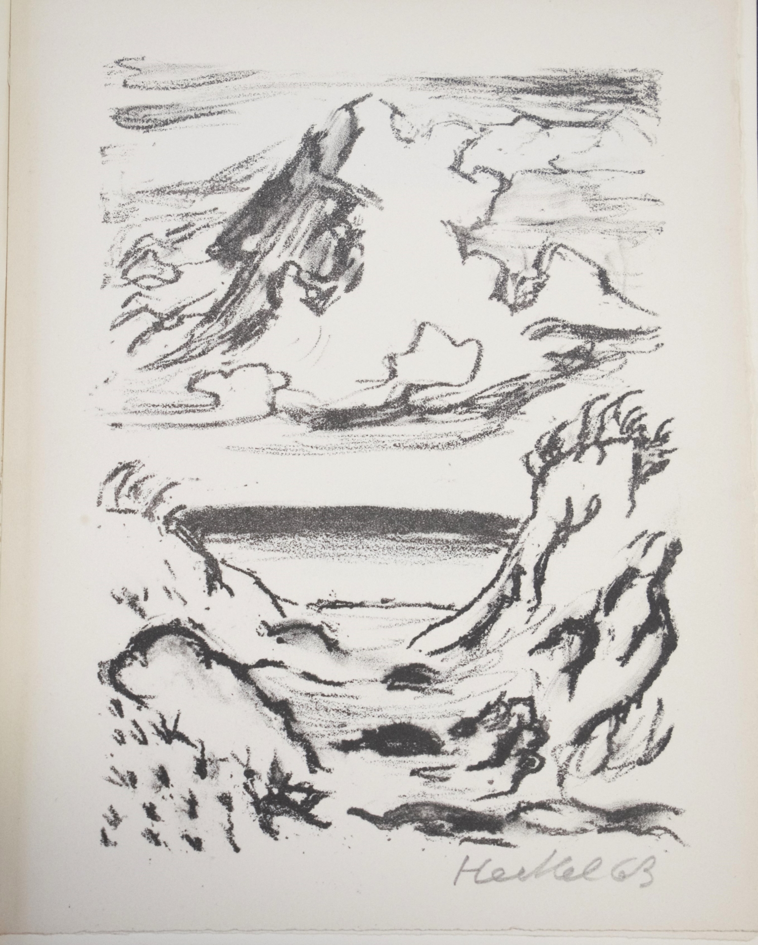 Arntz I 52. Riggs S. 345. Mason/Ludmann S. 140. – Eines von 50 Exemplaren (Gesamtauflage 600 Exemplare, die Nummer hier egschwärzt) der Vorzugsausgabe mit 6 Originalgraphiken: 3 Zwischentitelblätter ("Radierung", "Lithographie" und "Holzschnitt", jeweils mit einem anderem Signet "EH"), Lithographie "Dünental", Radierung "Stilleben" und Holzschnitt "Steineklopfer im Erzgebirge". Alle sechs Blätter auf Bütten, vom Künstler signiert und datiert "62" bzw. "63". Der erste Band behandelt die Holzschnitte, der zweite die Radierungen und Lithographien. Das Standardwerk verzeichnet 447 Holzschnitte, 196 Radierungen und 374 Lithographien, die alle abgebildet sind.