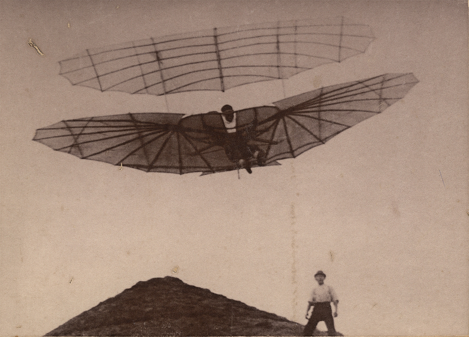 (1848-1896)Otto Lilienthal flying his gliding planes