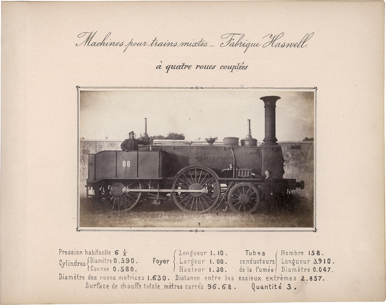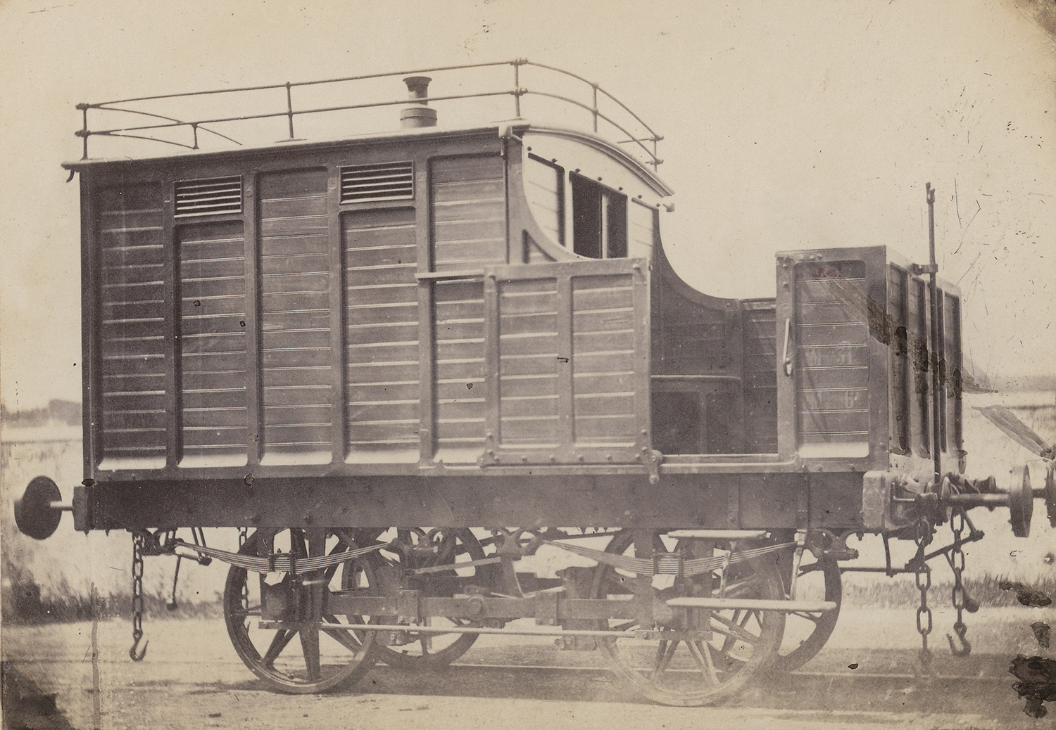Photographer unknown. Inventaire photographique et statistique du matérial roulant sur le réseau Vénetien et du Tirol Meridionale. 1863. 29 albumen prints, mounted to album boards. Most circa 8,5 x 14 cm. Each with printed captions above/below images on the mount, bound in half-canvas album with gilt-lettered title page.