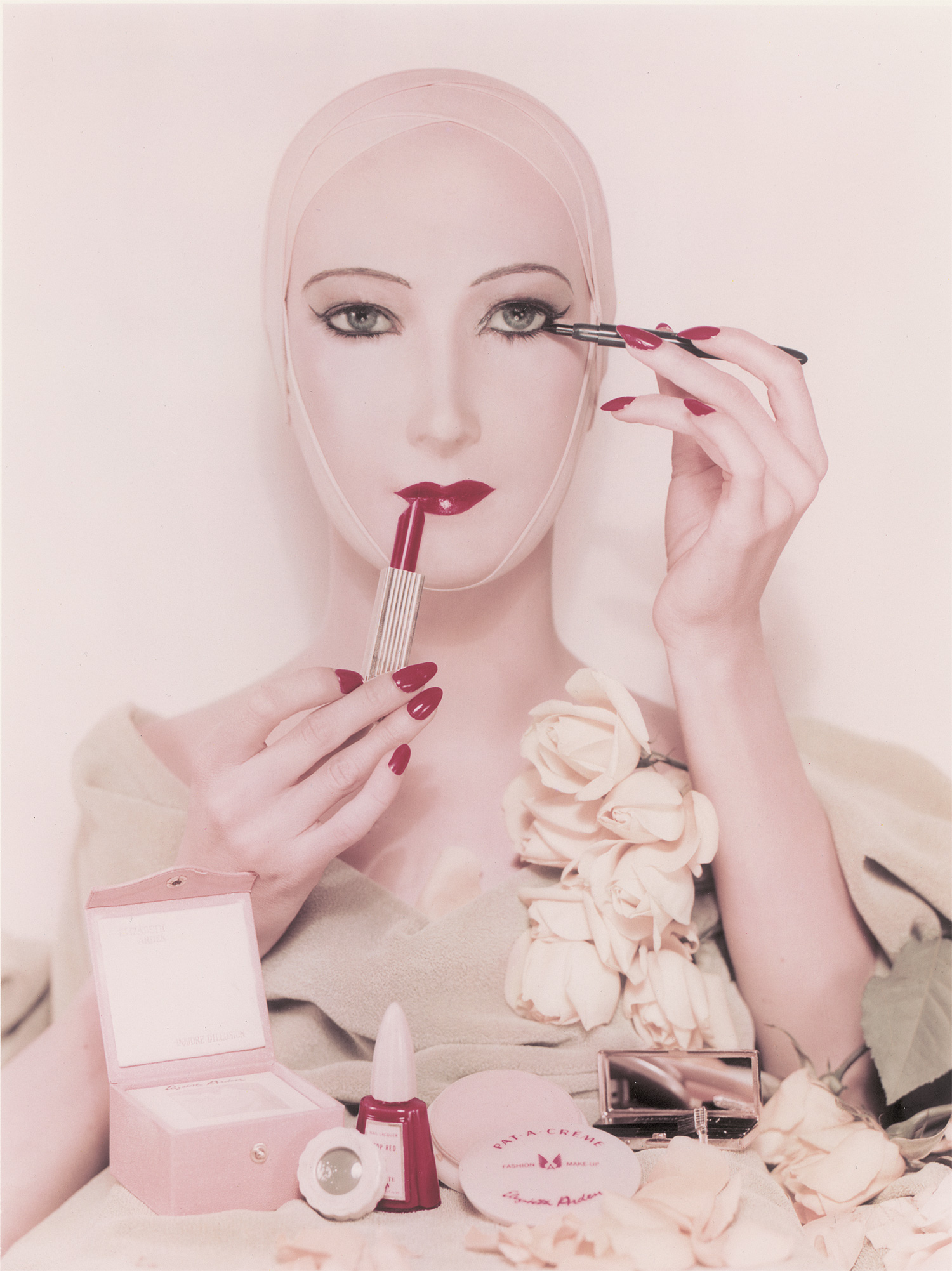 Blumenfeld Color. 1940-1950. 10 dye transfer prints, printed 1984. Each between 30 x 20 cm and 32 x 26 cm (sheet size 47 x 39,5 cm). Each with estate stamp, signed by F.C. Gundlach in pencil and numbered "27/50" on verso. Includes double sheet with title, table of contents, and imprint. Edition PPS Galerie F.C. Gundlach Hamburg. Presented in red linen clamshell box.