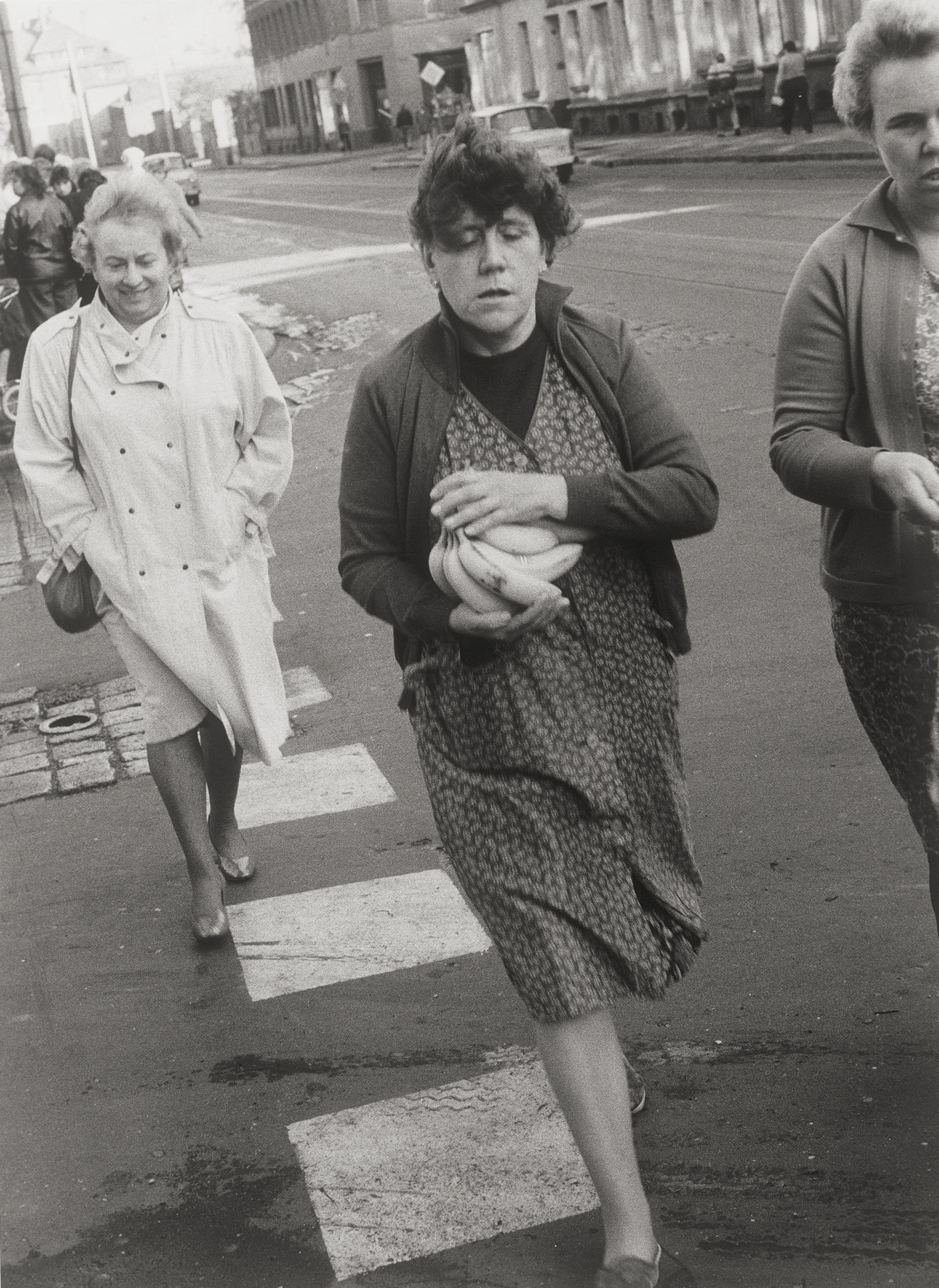 Gerhard Gäbler is recognized for his nuanced black-and-white photographs documenting everyday life in the GDR during the 1970s and 1980s. With a quiet, observational approach, his images convey the social atmosphere of East Germany through understated but resonant detail. This particular photograph shows a woman cradling a bunch of bananas - a rare and highly sought-after commodity in the GDR - on the eve of the state’s 40th anniversary. Gäbler’s work is represented in major institutional collections, including the Museum of Fine Arts, Houston, and the International Center of Photography, New York.