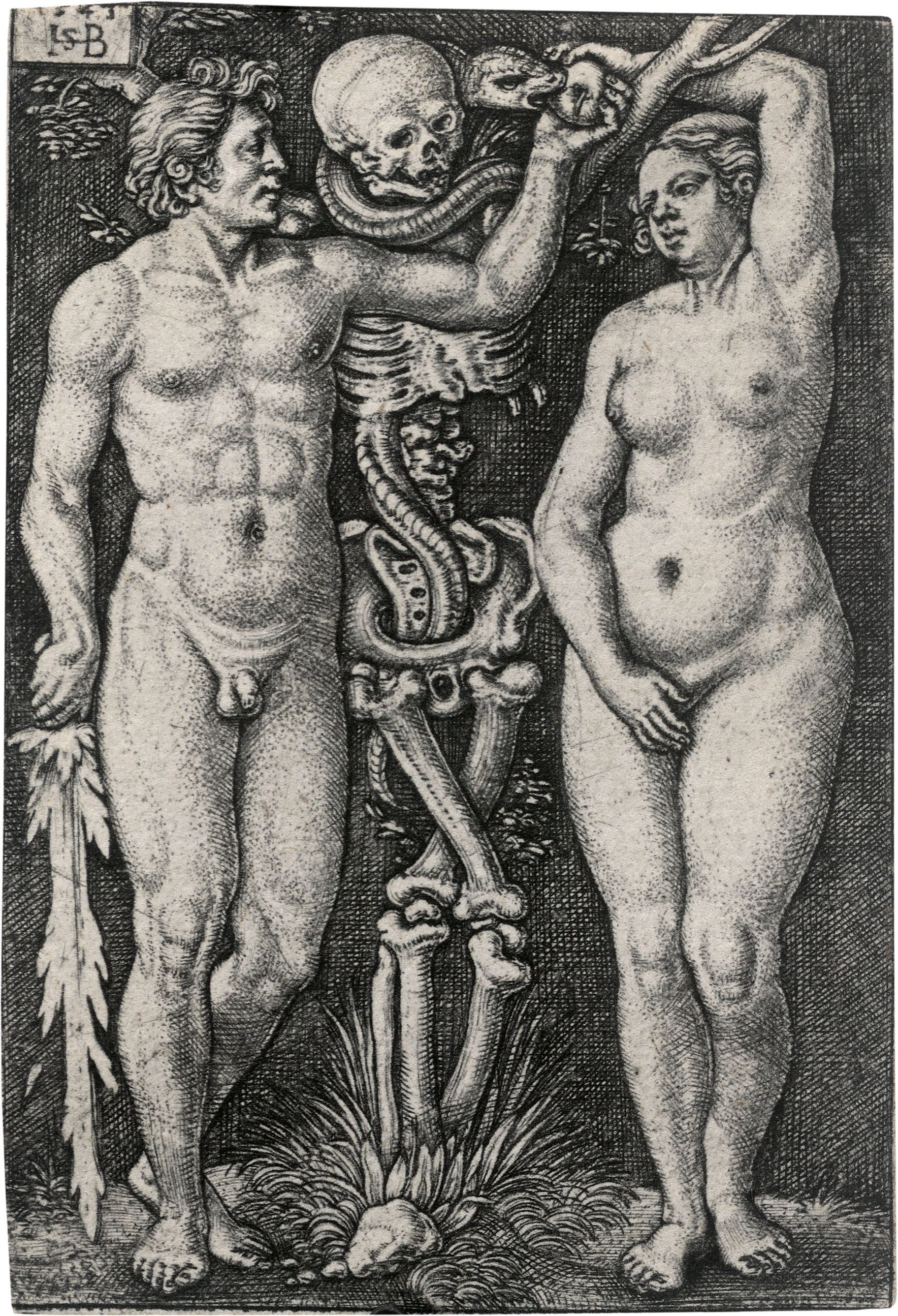 Adam und Eva. Kupferstich nach Barthel Beham. 8,1 x 5,5 cm. 1543. B. 6, Pauli 7, Hollstein 7 V, Röver-Kann (New Hollstein) 7 V.