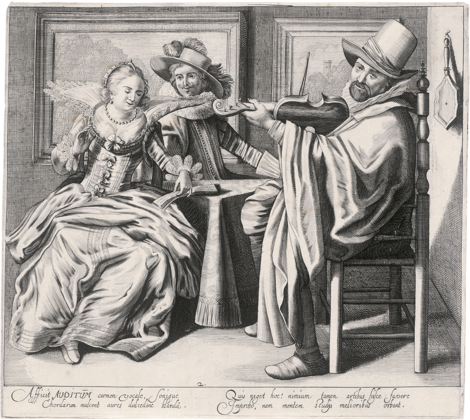 Auditum (Das Gehör). Kupferstich und Radierung nach Dirck Hals. 22,5 x 25 cm. Um 1625-30. Hollstein 8.