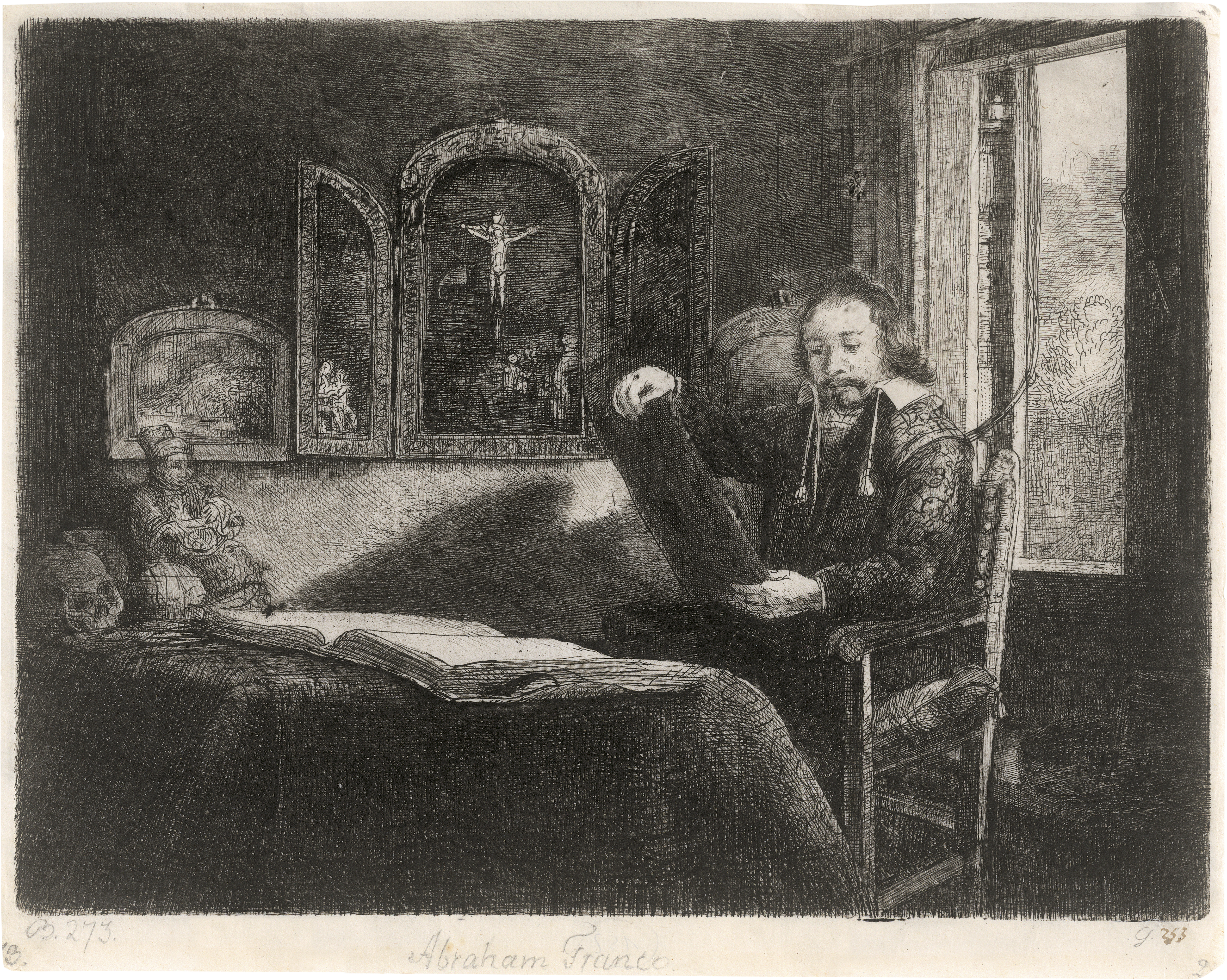 Der Apotheker Abraham Francken. Radierung. 15,8 x 21,1 cm. Um 1657. B. 273, White/Boon (Hollstein) 273 X, Nowell-Usticke 273 VII (von IX), Hinterding/Rutgers (New Hollstein) 301 XI (von XII).