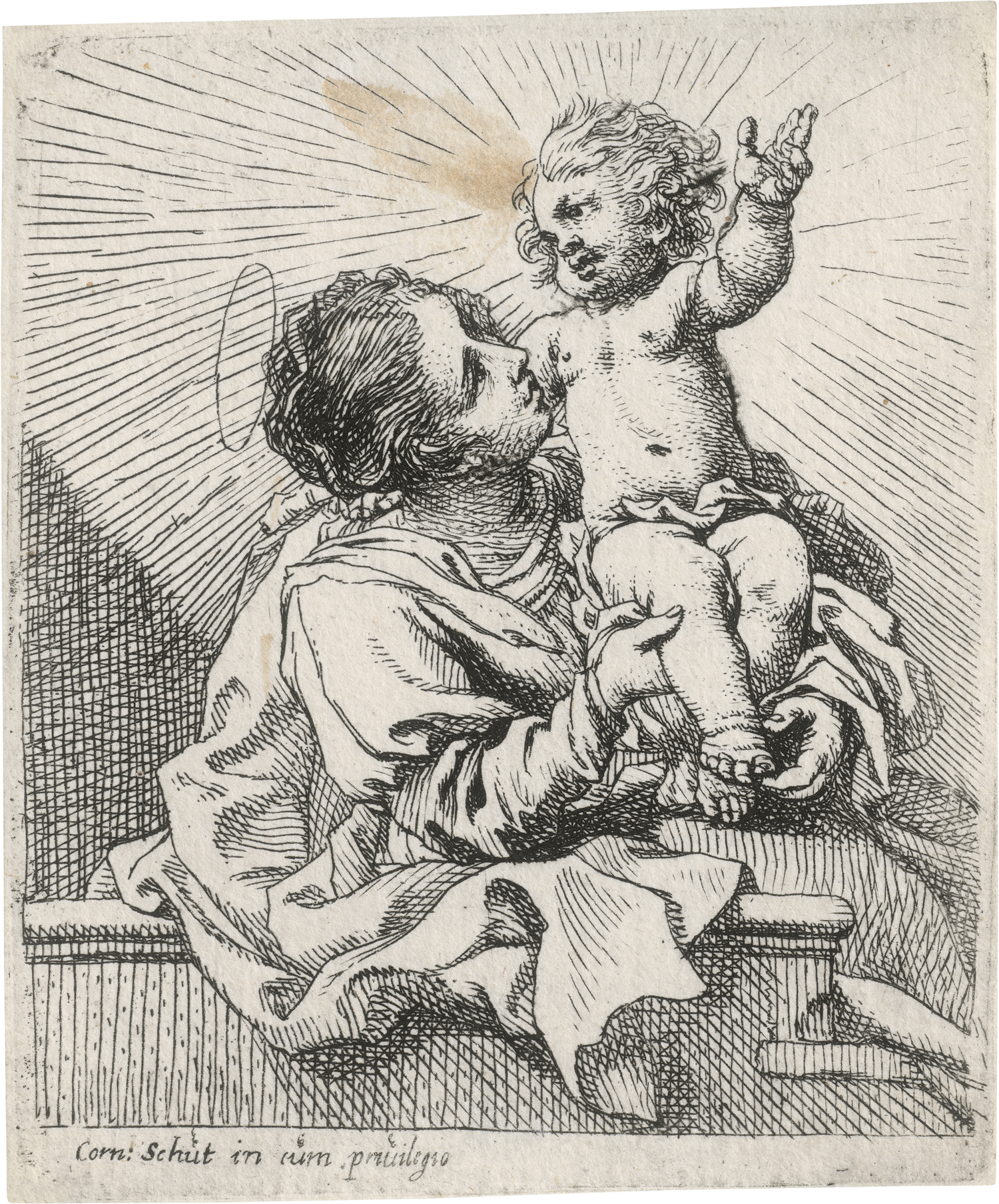 Die Jungfrau mit dem Kind. Radierung. 12 x 10,2 cm. Hollstein 48 I (von II).