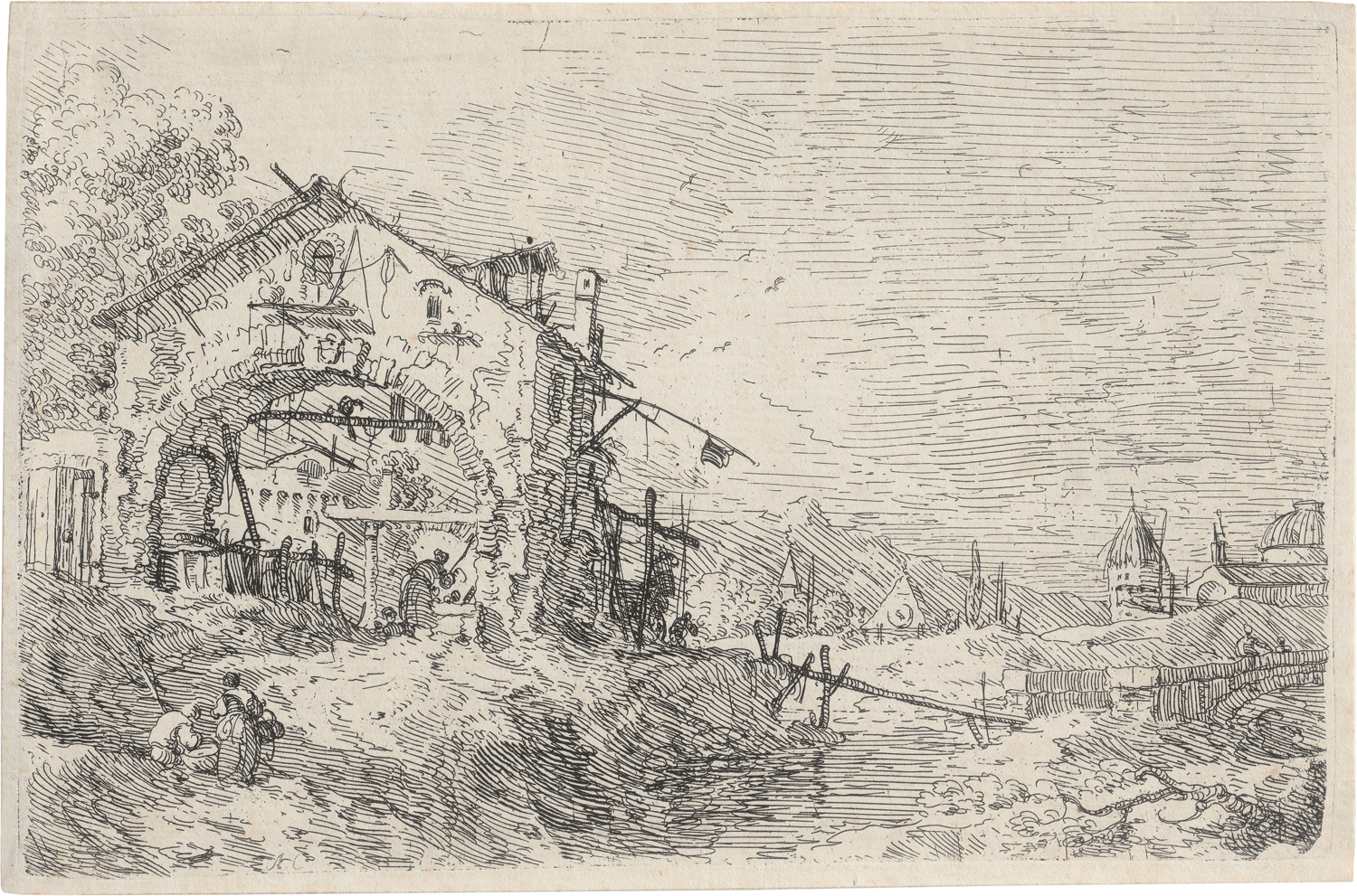 Die Landschaft mit der Frau am Brunnen. Radierung. 13,5 x 20,7 cm. De Vesme 26, Bromberg 29 II a (von III), Montecuccoli degli Erri 25 I (von IV).