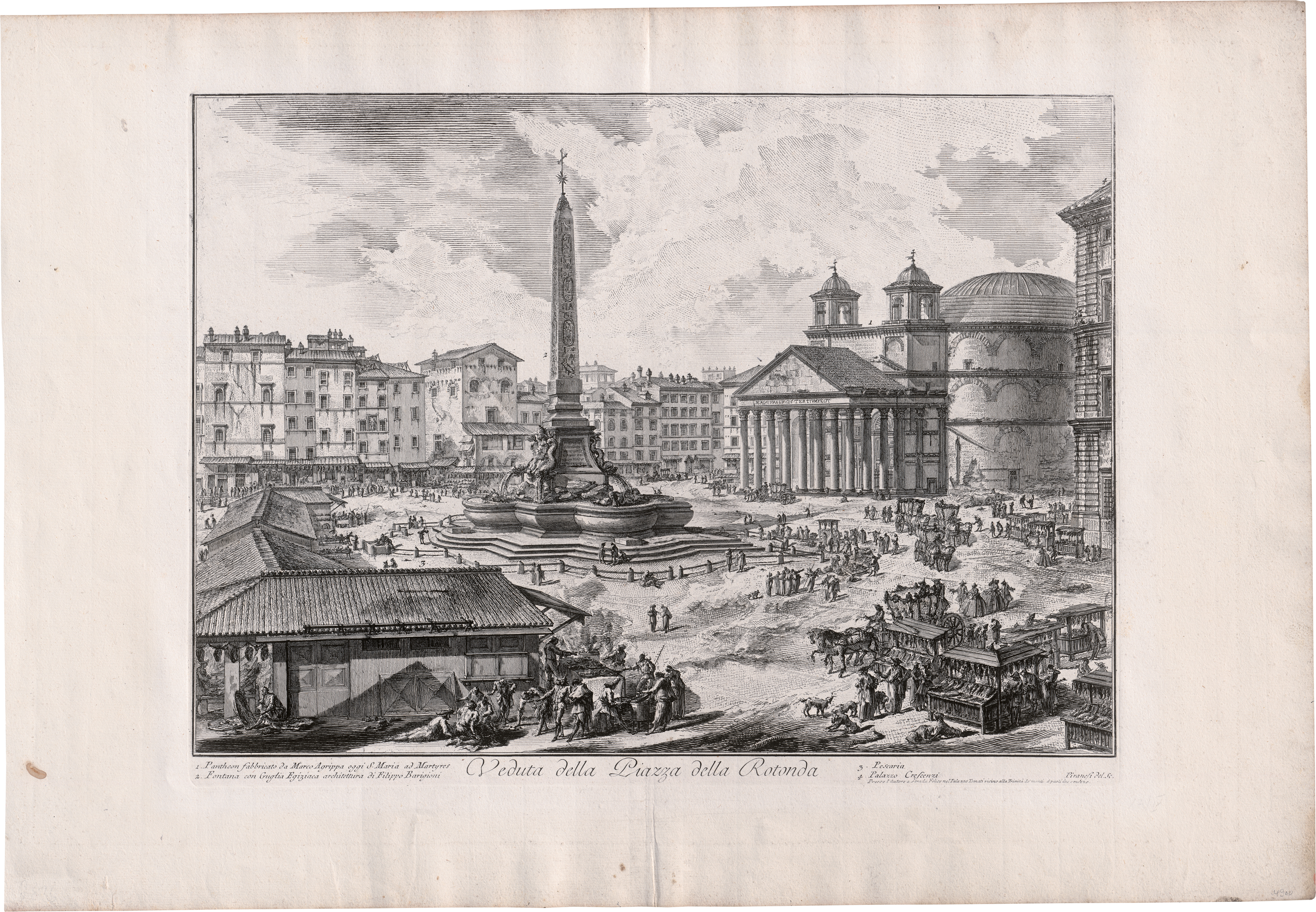 Veduta della Piazza della Rotonda. Radierung. 40,8 x 54,4 cm. (1751). Hind 17 IV (von VII). Wz. Fleur-de-lis im Doppelkreis.