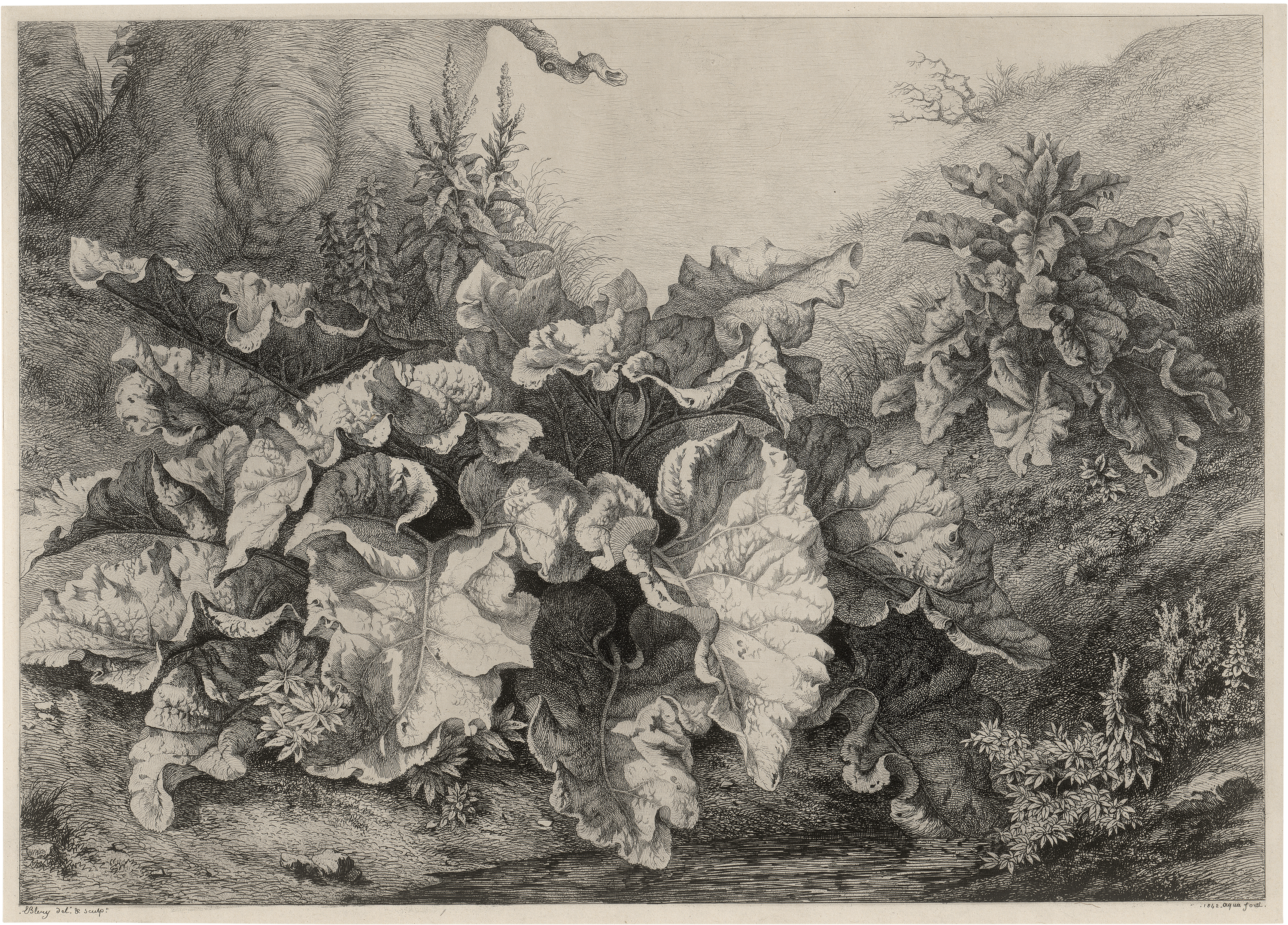 La Grande Bardane (Große Klette am Wasser). Radierung auf gewalztem China. 35 x 48,4 cm. 1842. Beraldi II, S. 124, 143.
