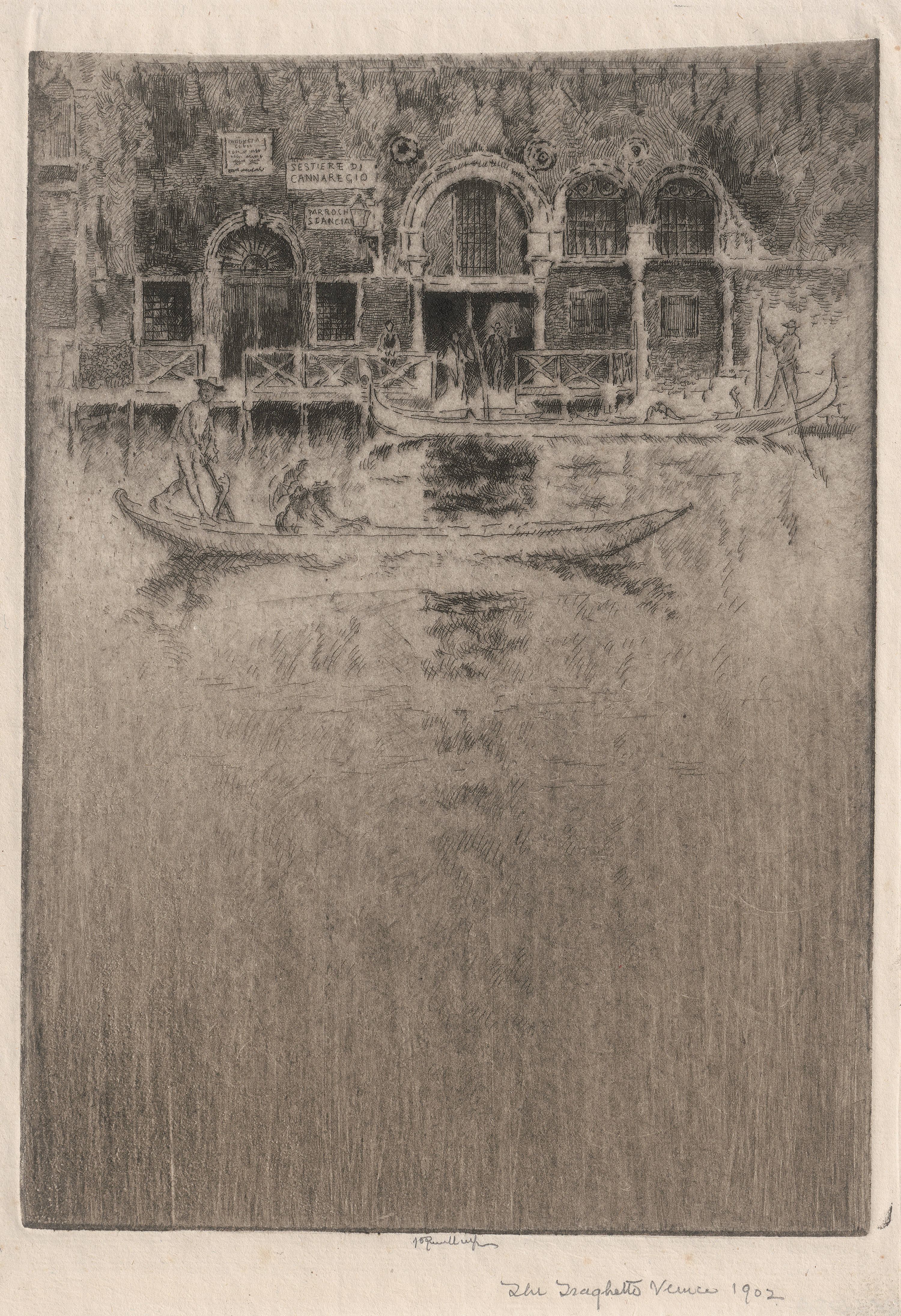 Byzantine Palace, Venice. Radierung und Kaltnadel auf Bütten. 25,2 x 17,4 cm. Unterhalb der Darstellung signiert sowie in Bleistift (von fremder Hand?) betitelt "The Traghetto Venice". (1883). Wuerth 75.