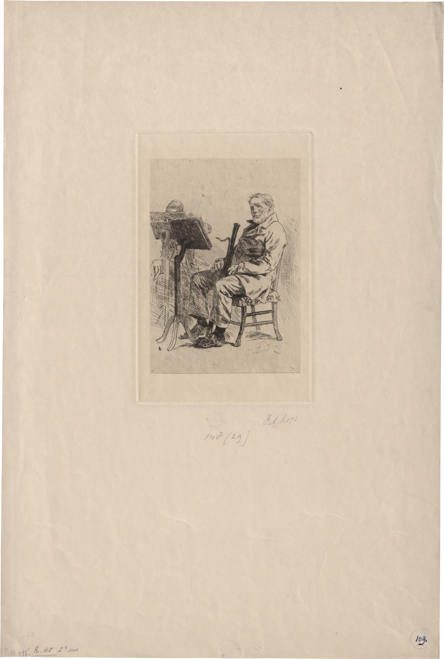 Der Fagottbläser im Orchester. Radierung auf Similijapan. 19,8 x 12,8 cm. Mascha 495 II (von III).