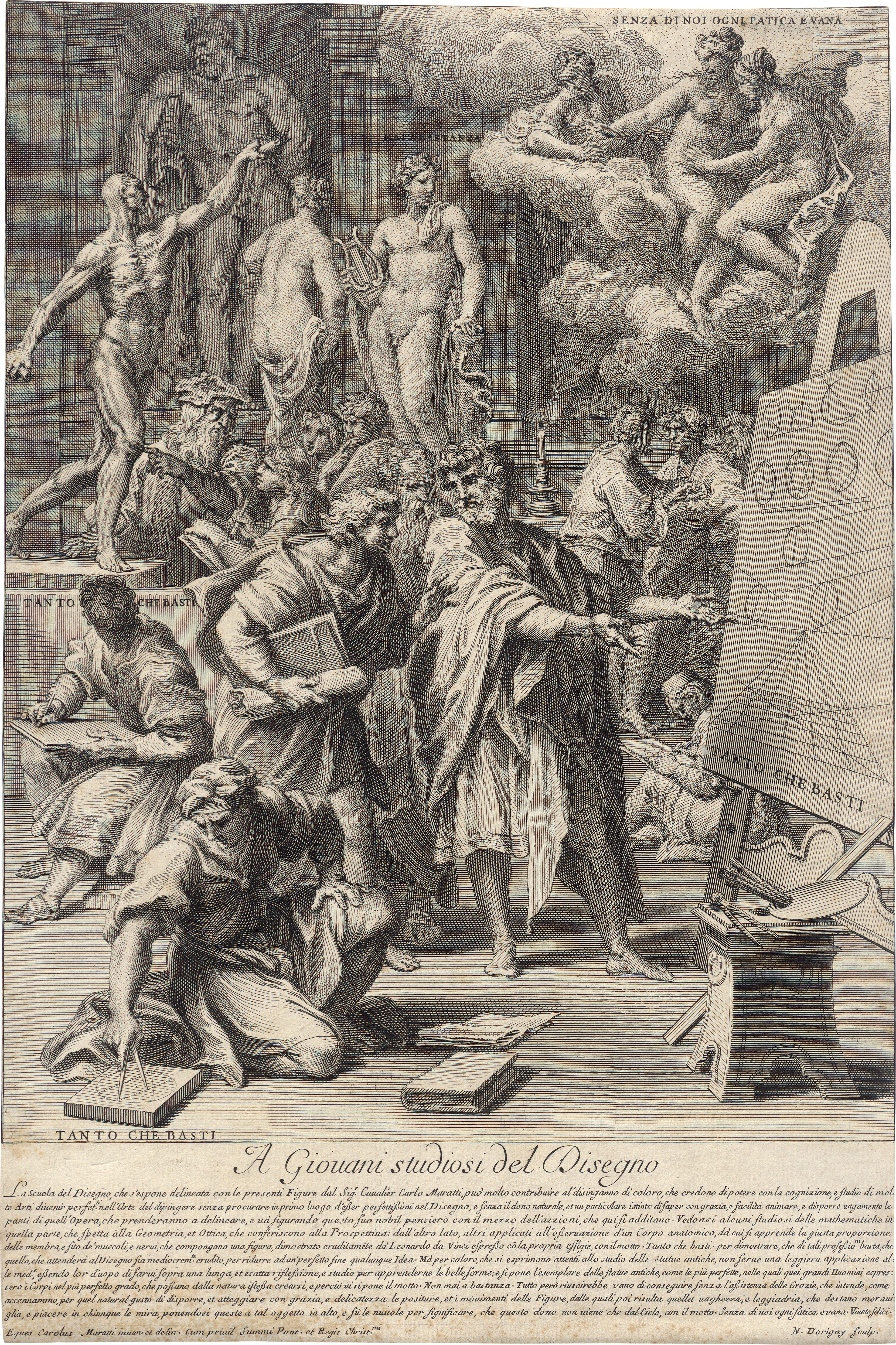 La Scuola del Disegno ("L'Accademia di Leonardo"). Kupferstich nach Carlo Maratta. 46,7 x 31,1 cm. (1728). Le Blanc 51. Wz. Osterlamm im Doppelkreis.