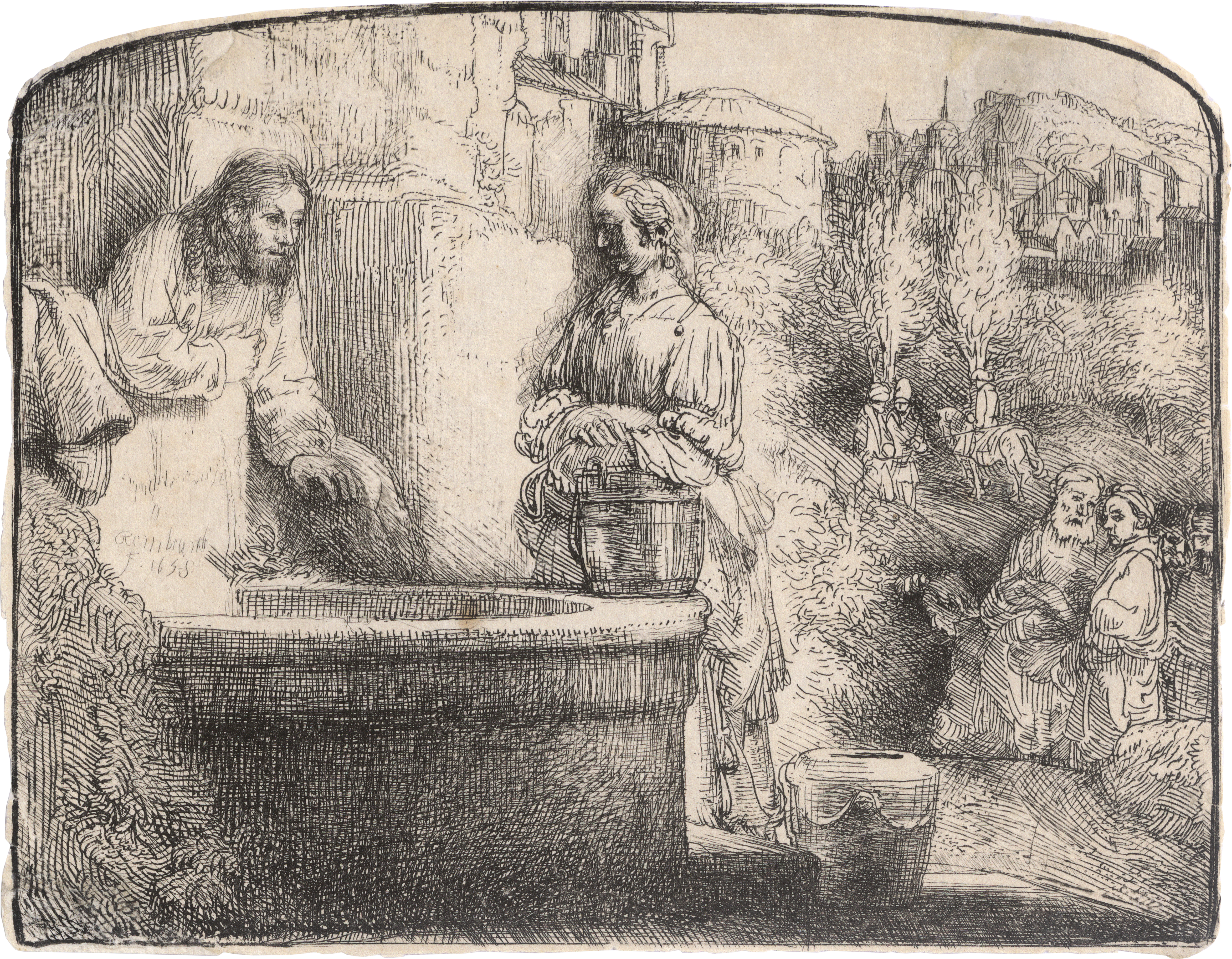 Christus und die Samariterin. Radierung. 12,6 x 16,2 cm. 1658. B. 70, White/Boon (Hollstein) 70 III, Nowell-Usticke 70 IV (von V), Hinterding/Rutgers (New Hollstein) 302 IV (von V).