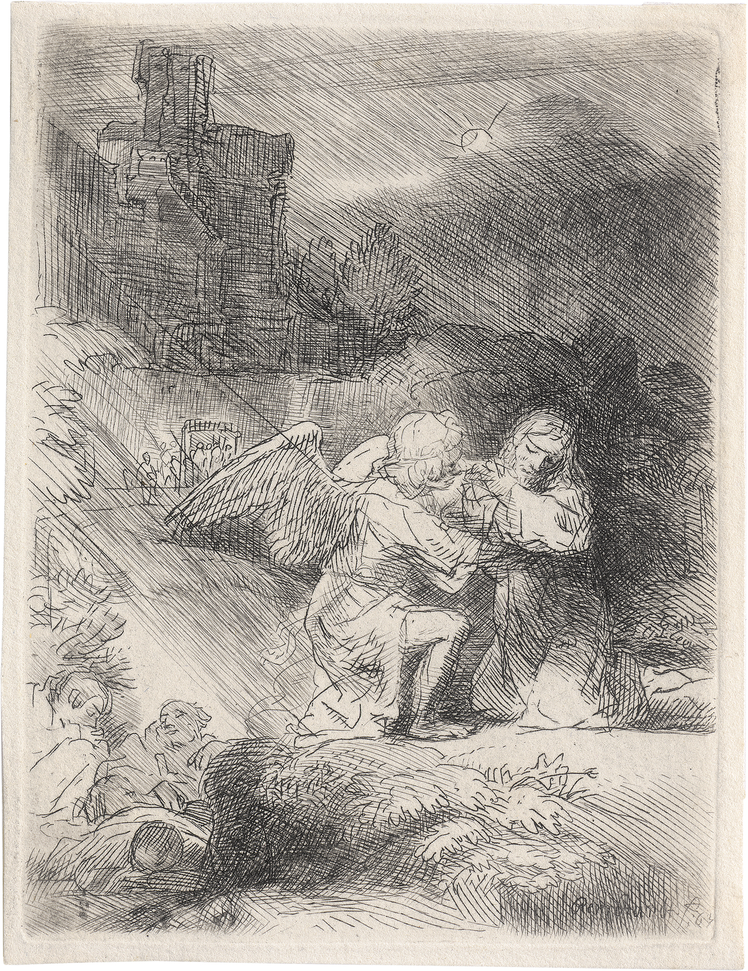 Christus am Ölberg. Radierung mit Kaltnadel auf Velin. 11,1 x 8,4 cm. 1663. B. 75, White/Boon (Hollstein) 75, Nowell-Usticke 75 II, Hinterding/Rutgers (New Hollstein) 269 III.