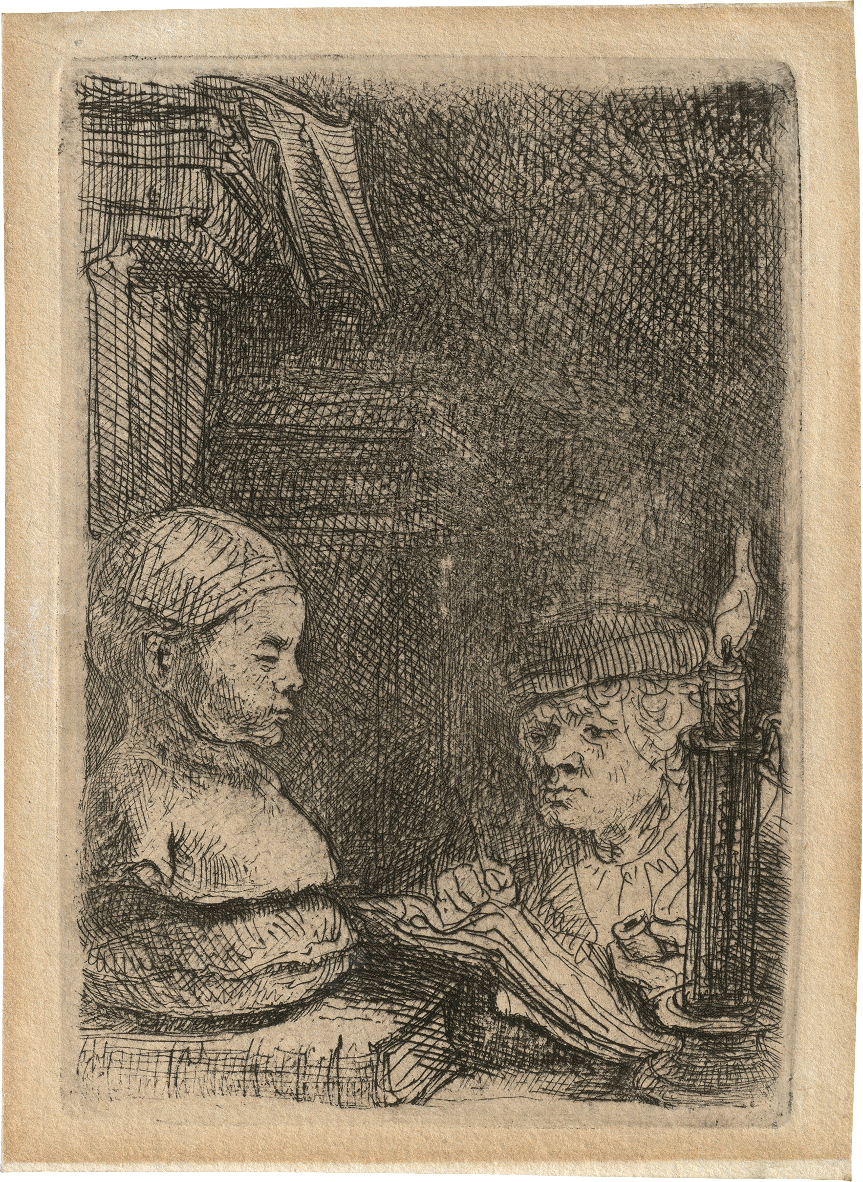 Der Zeichner. Radierung. 9,2 x 6,3 cm. Um 1641. B. 130, White/Boon (Hollstein) 130 III, Nowell-Usticke 130 V, Hinterding/Rutgers (New Hollstein) 192 V (von VI).