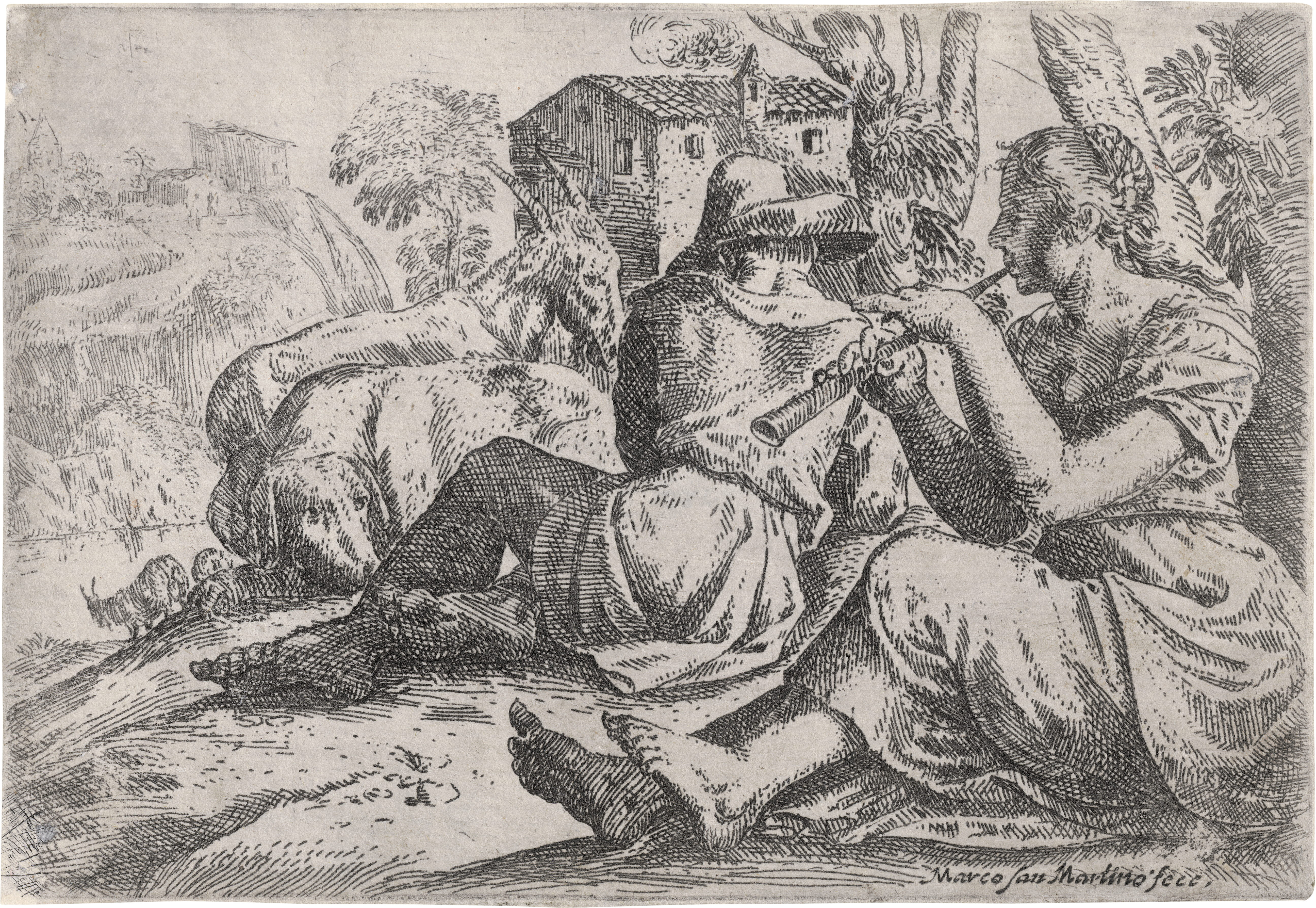 Der Hirte und die flötenspielende Hirtin. Radierung. 11,1 x 16,4 cm. B. 31, Nagler 31.