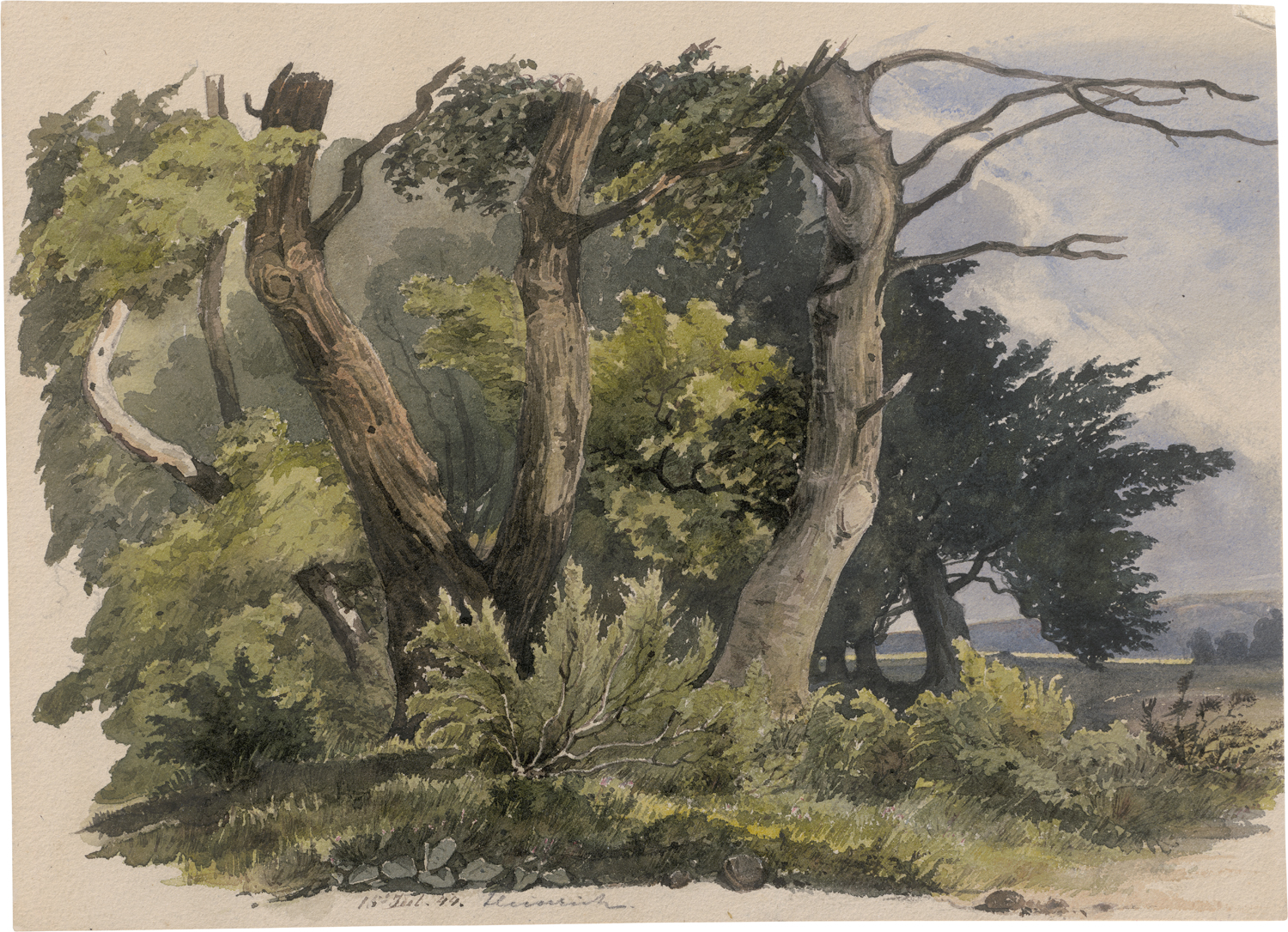 Aquarell auf festem Velin. 19,8 x 27,3 cm. Am Unterrand in schwarzer Feder datiert "15 Jul [18]44".