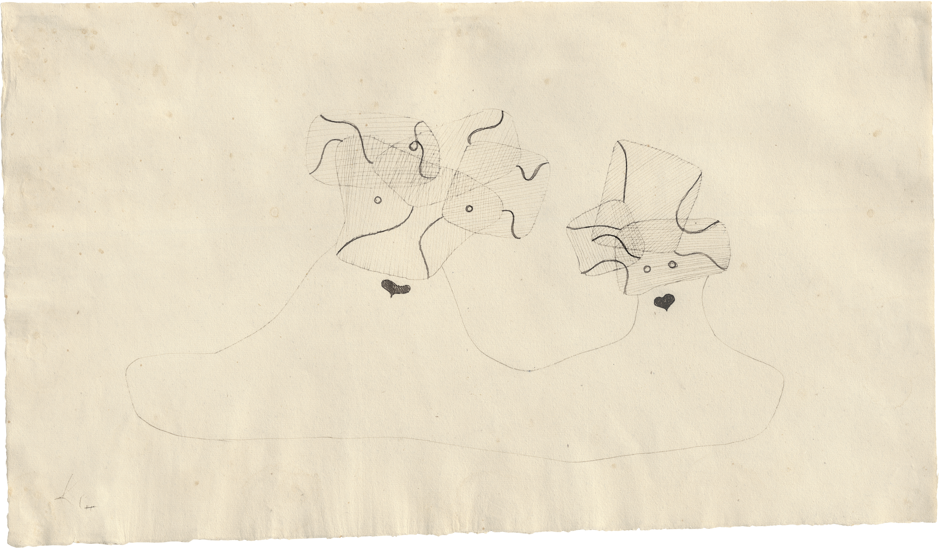 Schlangenhaare schwingen rhythmisch um die Köpfe der beiden Schwestern. Hinterfangen sind sie von nebelhaften Elementen mit feinsten Netzwerken einander überschneidender und durchdringender paralleler Lineaturen. Ein paar Punkte als Augen, schon werden daraus Physiognomien menschenähnlicher und doch geisterhafter Geschöpfe. Symbiotisch vereinigen sich nach unten hin ihre beiden Körper in einer einzigen, nicht absetzenden Linie zu einer weich geschwungenen horizontal liegenden Form. Jeder der reizenden Schwestern aber zeichnet Klee spielerisch und mit einem tiefgründigen Humor ein Herz symbolträchtig weit oben in Hals- oder Mundbereich. Die vom Künstler erdachten Figuren einer mythologisch-archaischen Welt scheinen in einer prozesshaften Bewegtheit und Wandelbarkeit begriffen, die luftige Komposition eine Äußerung teils unbewusster Bilder von charakteristischer Vieldeutigkeit und kosmischer Symbolik.