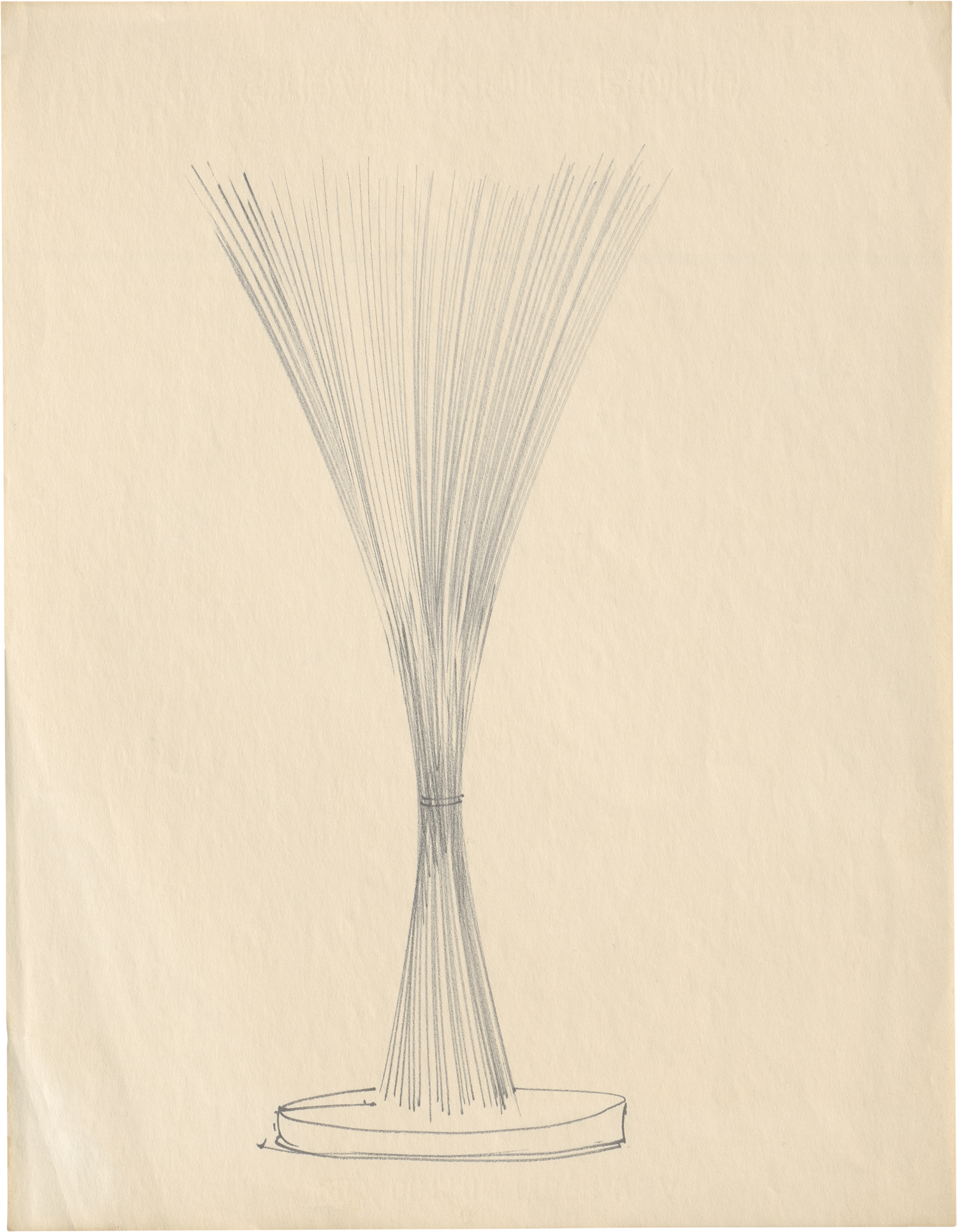 Entwurfszeichnung für eine Drahtskulptur auf runder, flacher Basis. Mit Echtheitszertifikat des Nachlasses Harry Bertoia von Celia Bertoia, Utah, 01.06.2022 (in Kopie).