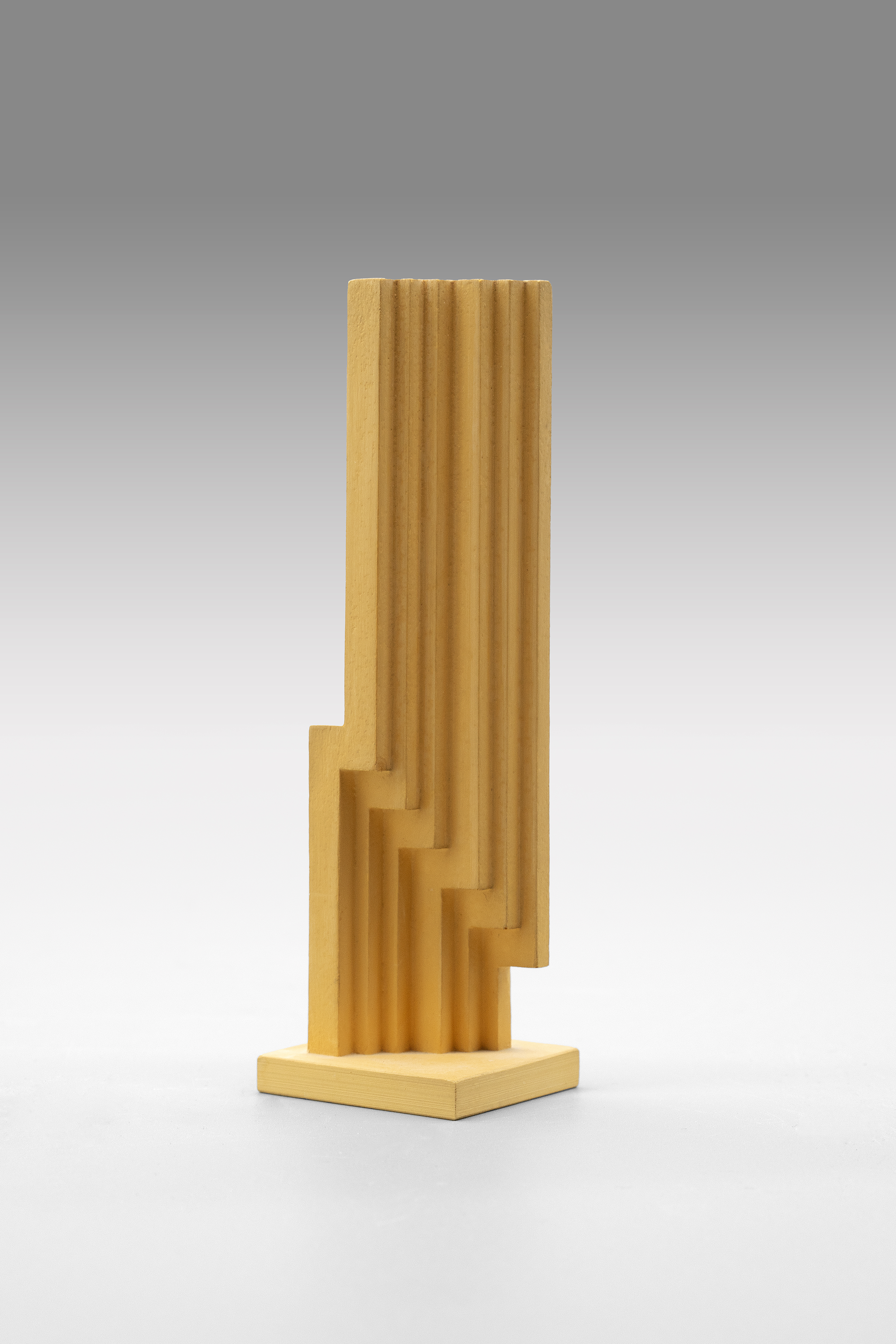 Holz, gelb gefasst, auf Holzplinthe. 1992.