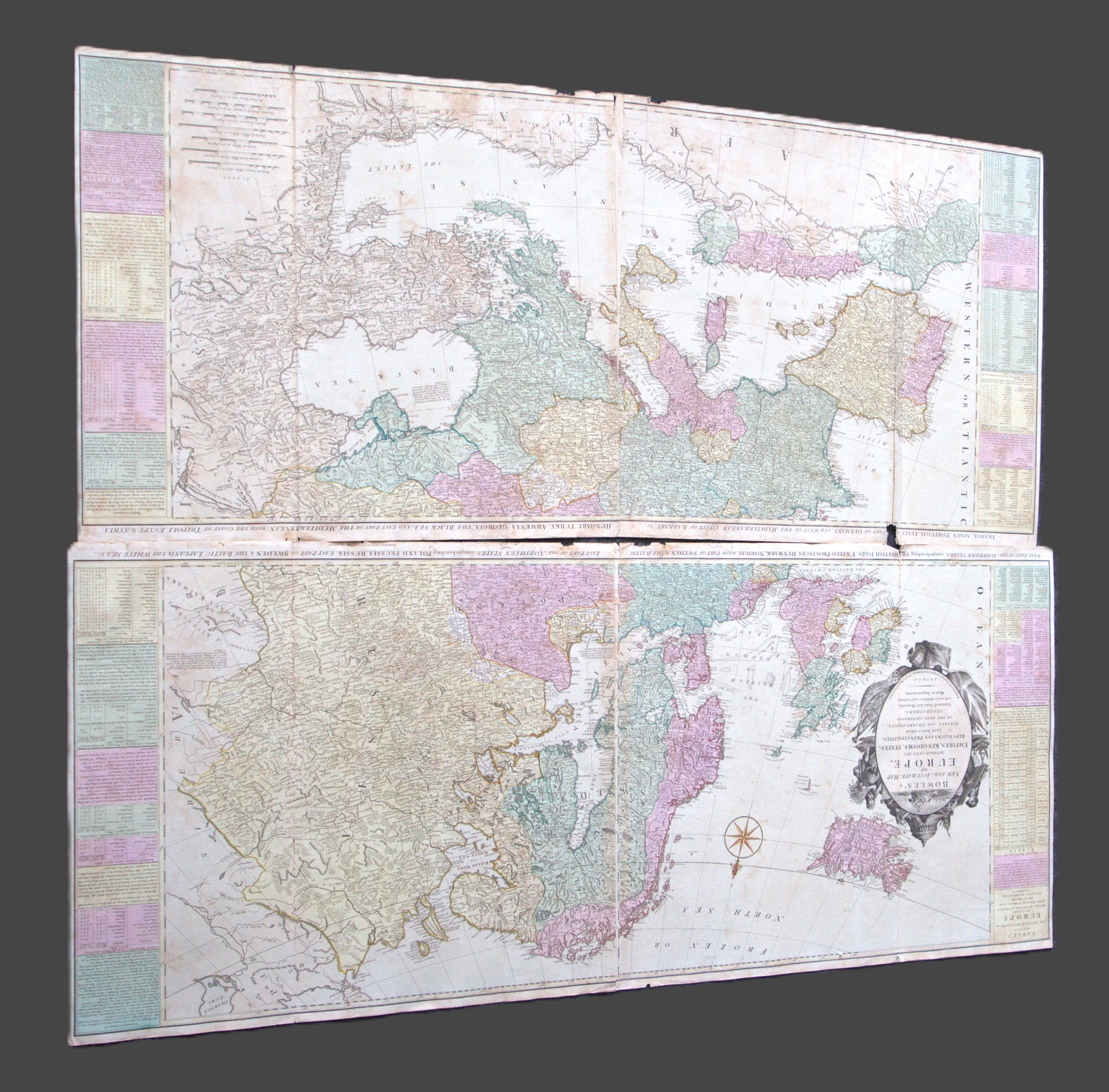 Bowles, Henry Carington. New Four-sheet-Map Atlas of the World displayed: in a New and complete Set of most accurate Maps of the World, Europe, Asia, Africa and America. 1 loser Titel. 5 kolorierte Kupferkarten aus zusammen 16 Segmenten. 53 x 62,5 cm bis 104,5 x 118,5 cm (Blatt). London, Carington Bowles, 1802.
