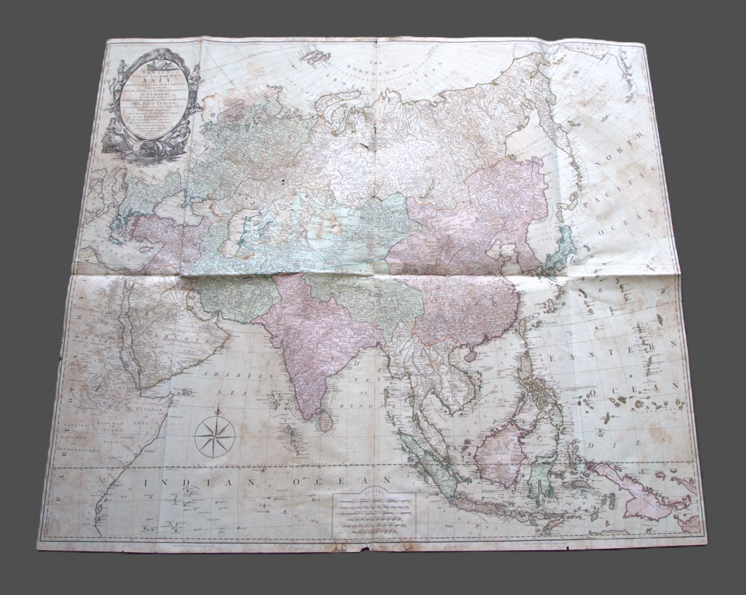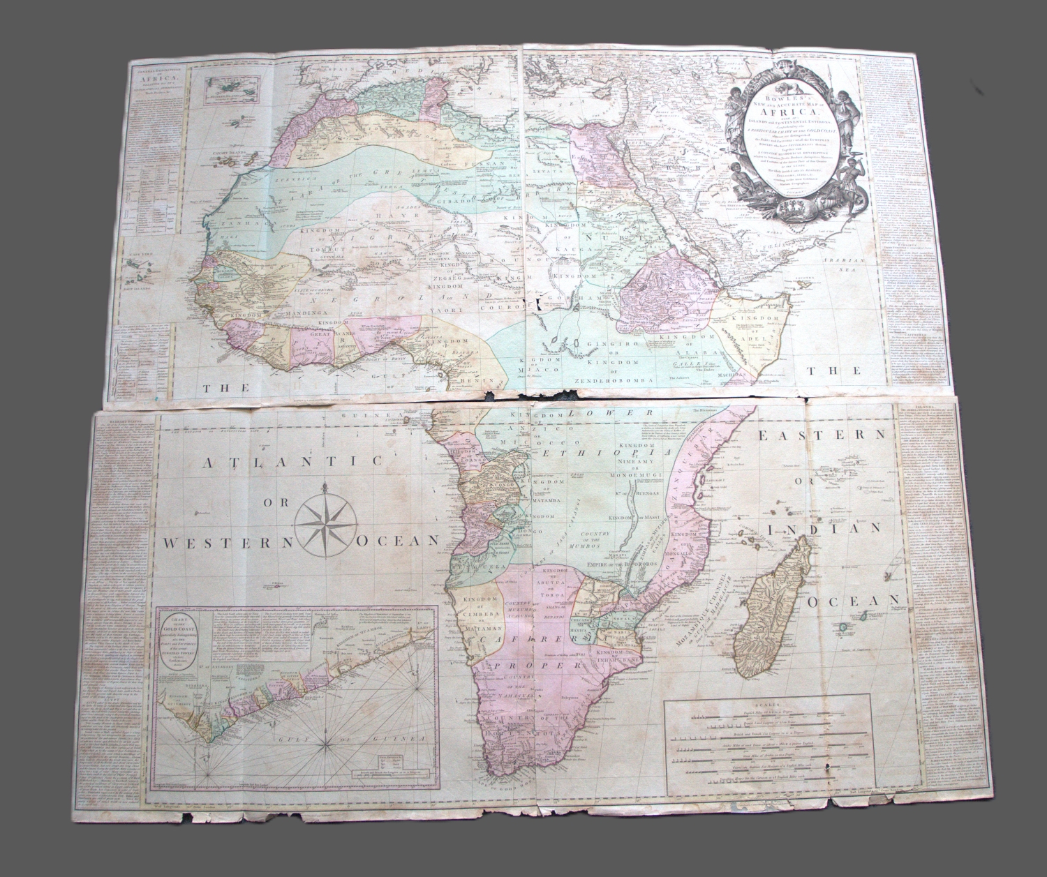 Henry Carington Bowles (1763-1830) war ein Londoner Verleger, der in Zusammenarbeit mit Samuel Carver unter dem Namen "Bowles & Carver" zahlreiche Karten und Atlanten veröffentlichte. In den Vorliegenden wird jedoch nur "Carington Bowles" aufgeführt. – Mit mehreren Falzen, teils braun- und feuchtfleckig sowie mit Einrissen, teils hinterlegten Fehlstellen und Randläsuren. Titel mit hs. Besitzvermerk der Zeit. Sehr selten, besonders alle fünf Karten zusammen.