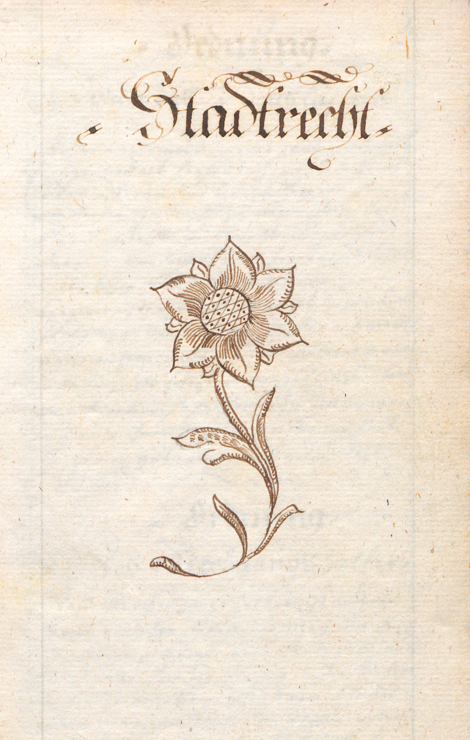 Graubündener Codex mit dem ausführlichen Stadtrecht für die Stadt Chur, der heutigen Hauptstadt des ostschweizerischen Kantons Graubünden, geschrieben in feinster deutscher Kurrentschrift mit Auszeichnungen in kalligraphischer Fraktur und zwei hübschen Vignetten, davon eine Blume in Federzeichnung: "Stadtrecht" (Teil I) und "Ordnungen Eines Hoch und Wohlweisen Raths, Vogtgerichts, Ehegerichts, Stadtgerichts, Avvellatz-, Kundschaffts, Offenrechts, Arrests und Prefectengerichts, Erneuert und verbessert im Jahr 1676 Abgeschrieben 1774" (Teil II). Tatsächlich markiert das Jahr 1676 einen wichtigen Zeitpunkt in der Rechtstradition der Stadt Chur, die als älteste Stadt der Schweiz gilt. Stadtrechte waren in dieser Epoche von zentraler Bedeutung für die Organisation des städtischen Lebens und die Zentralität des Ortes. Sog. "Avvellatz-Gesetze" wurden vertreten durch Avvellatz-Richter (auch Avellaz-Richter), die v. a. im 17. und 18. Jahrhundert in den "Drei Bünden" (einem Vorläuferstaat des heutigen Graubünden in der Schweiz) tätig waren, was das Stadtrecht von 1676 kodifizierte.