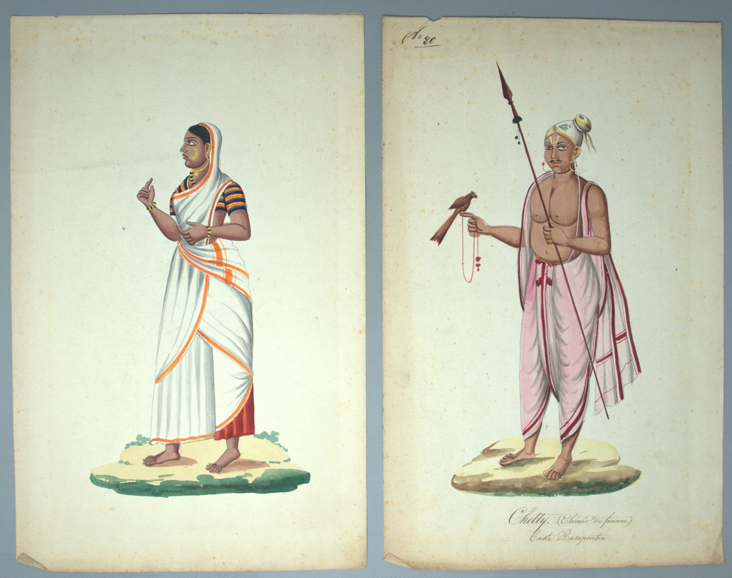 Indische Berufe. 7 farbige Originalzeichnungen. Aquarelle und Gouache über Federzeichnung auf Bütten, unten teils betitelt. Je 38,5 x 24 cm. Indopersischer Raum 19. Jahrhundert.