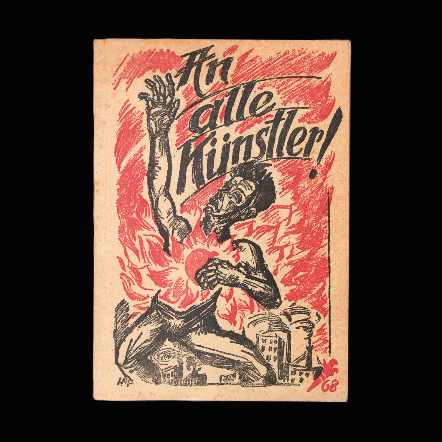 An alle Künstler! 47 S. Mit 5 ganzseitigen Illustrationen. 20 x 14 cm. Farbig illustrierte OBroschur (etwas gebräunt und leicht fleckig) von Max Pechstein. Berlin 1919.