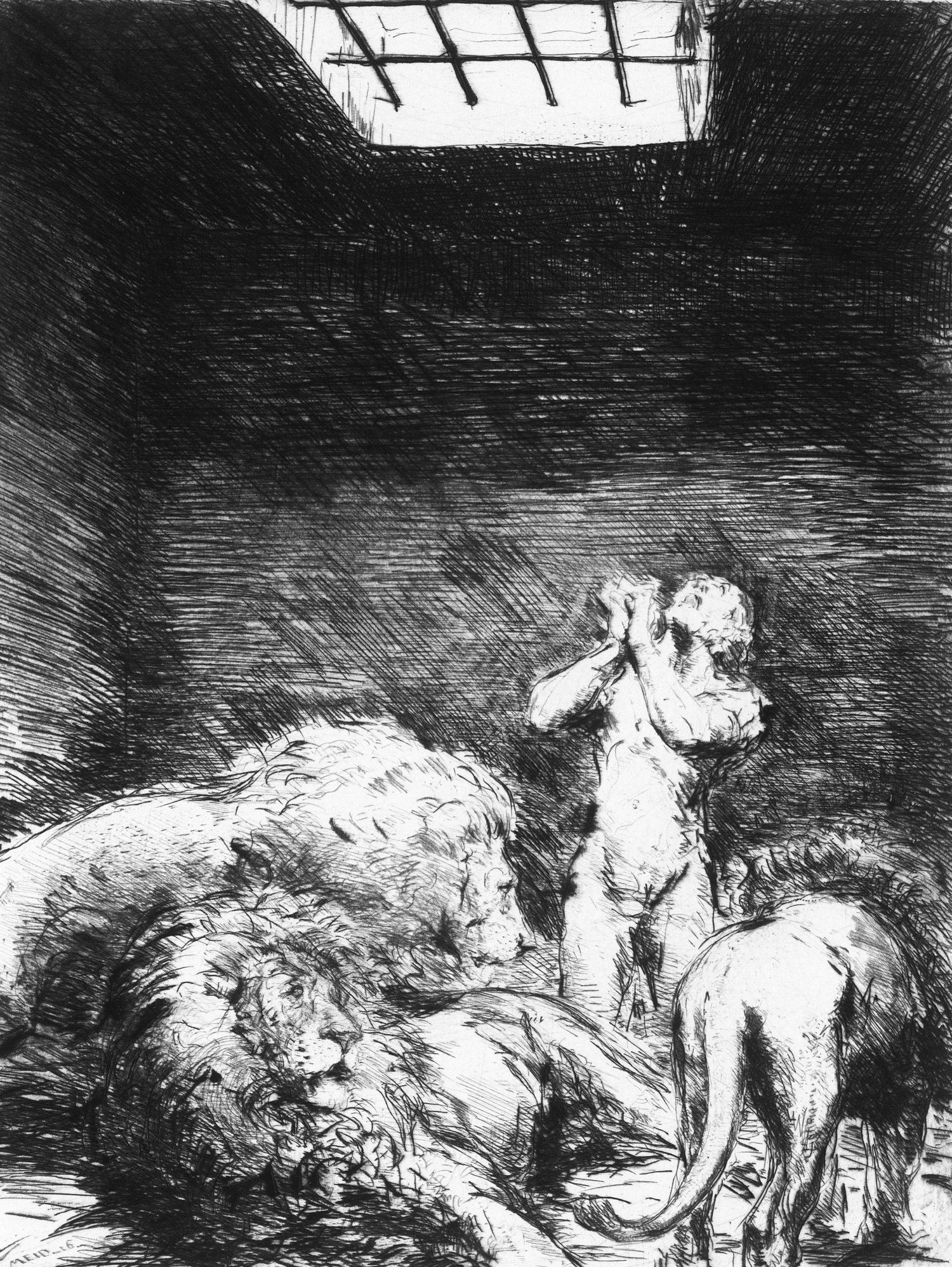 Meid, Hans. Zwanzig Radierungen zur Bibel. 17 signierte Original-Kaltnadelradierungen (von 20). Meist ca. 51 x 34 cm. Lose Bl., meist unter Passepartout. In priv. neuerer Pappmappe mit 4 Schließbändern. 1916-1926.