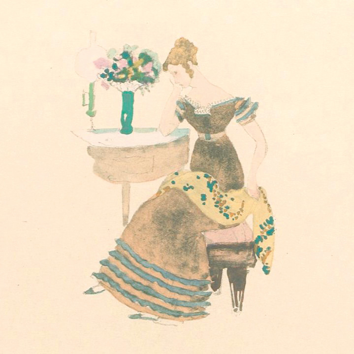 Walser, Karl. - Busoni, F. Die Brautwahl. Musikalisch-phantastische Komödie in drei Akten und einem Nachspiel nach E. T. A. Hoffmanns Erzählung. Zweite, endgültige, mit der Komposition übereinstimmende Fassung. 55 S. Mit 16 (8 kolorierten) Tafeln und mehreren kolorierten Vignetten von Karl Walser. 28,5 x 36,5 cm. Farbig illustr. OPappband (etwas gebräunt, berieben und leicht bestoßen) mit KGoldschnitt. Berlin, Bruno Cassirer, 1913.