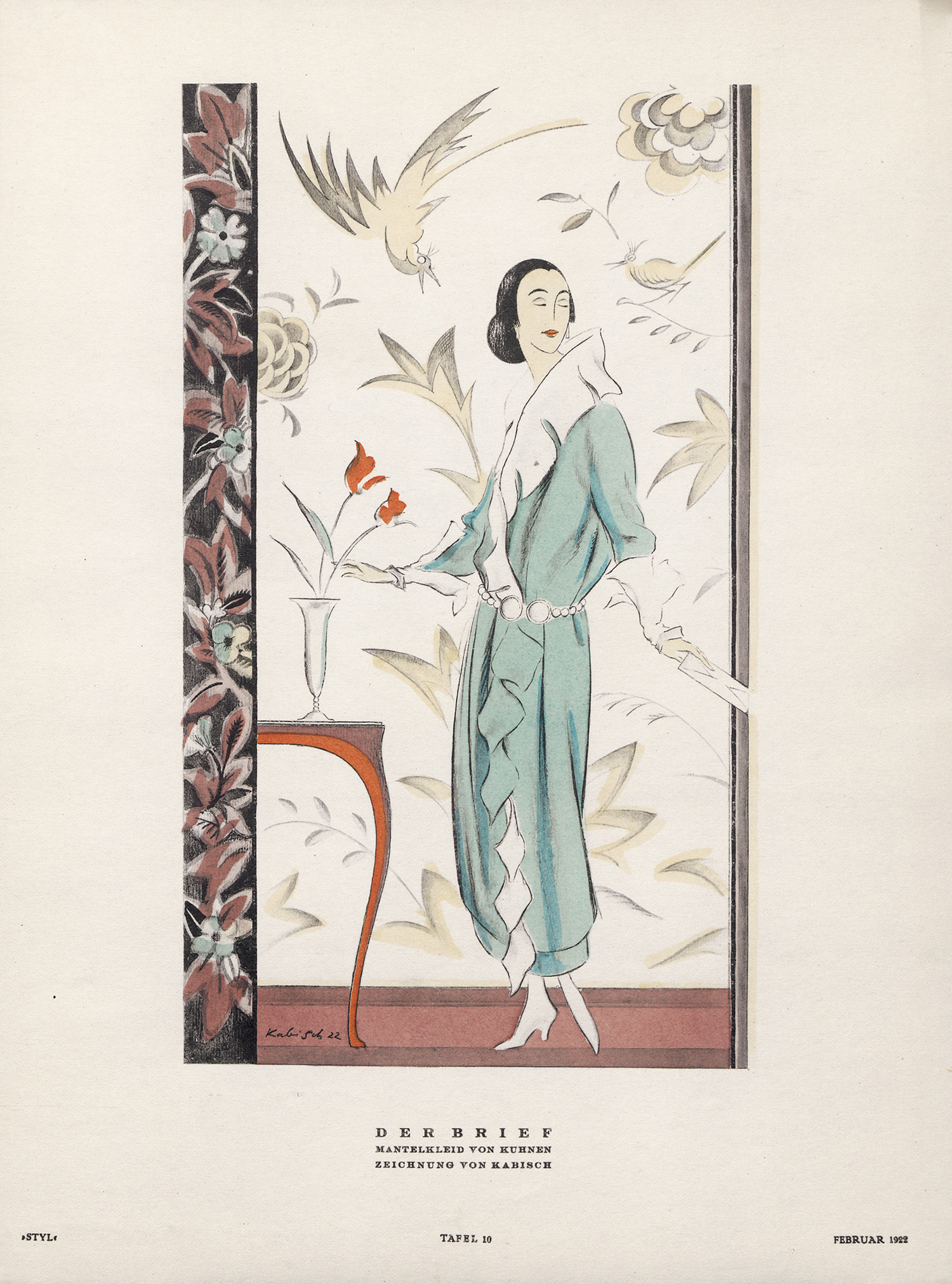 Lipperheide Zb 300. Hiler 822. Laakmann-T. 424. – Erster kompletter Jahrgang der anspruchsvollen Modezeitschrift, mit den schönen Art-Déco Illustrationen. Mit einer Beilage von Modestudien von Anni Offterdinger in Heft 5/6 und einer Beilage mit 9 kolorierten Tafeln in Heft 7. Beteiligte Künstler waren unter anderem L. Kainer, W. Trier, E. Orlik, R. Sintenis. Literarisch beteiligten sich neben anderen K. Edschmid, E. Ludwig, A. R. Meyer und Klabund an der Zeitschrift. – Gut erhalten.