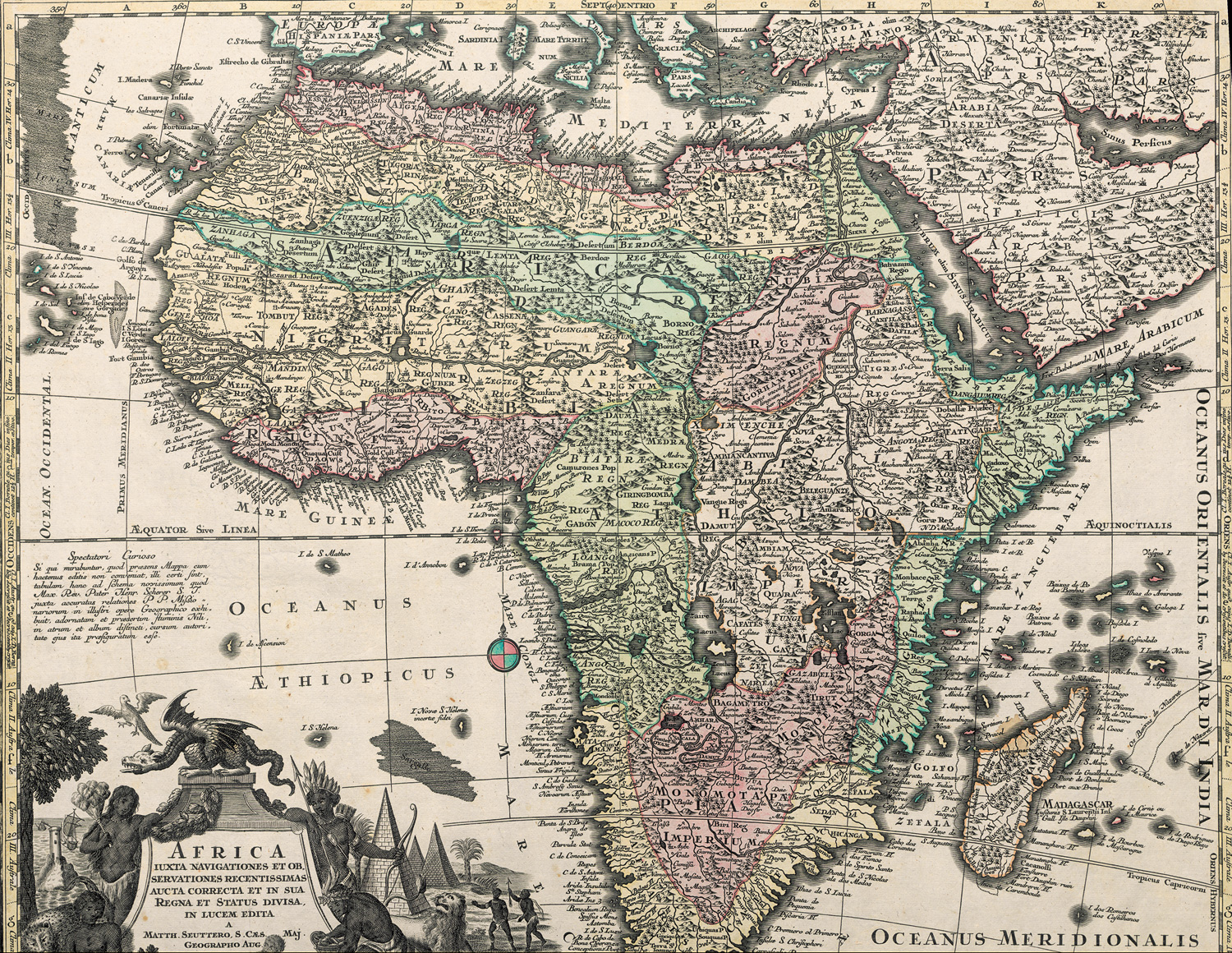 Seutter, Matthäus. Africa. Grenz- und flächenkolorierte Kupferkarte. 50 x 58 cm (Plattenrand). Augsburg 1730.