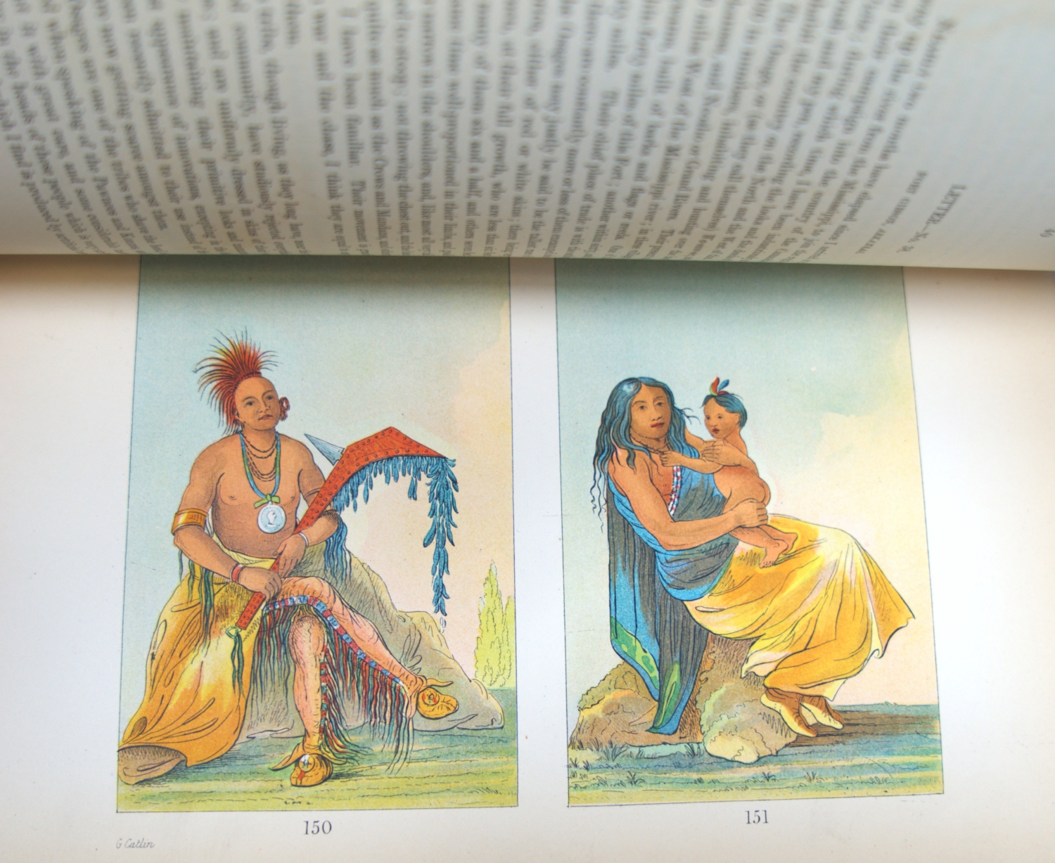 Vgl. Sabin 11536 (frühere Ausgaben). Howes C 241. – Späterer Ausgabe von dem monumentalen Werk George Catlins (1796-1872). Es erschienen zahlreiche Nachdrucke mit dem Erscheinungsjahr der ersten Ausgabe von 1841 und zum Teil mit Abwandlungen des Titels "Letters and Notes on the Manners, Customs …".