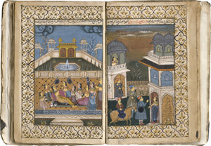 Mogul-Miniaturmalerei. 16 Blätter in farbiger Deckfarbenmalerei
