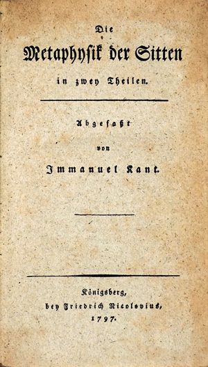 Metaphysische Anfangsgründe der Tugendlehre. Königsberg, F. Nicolovius, 1797